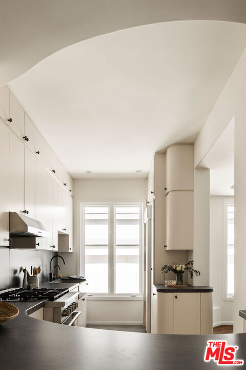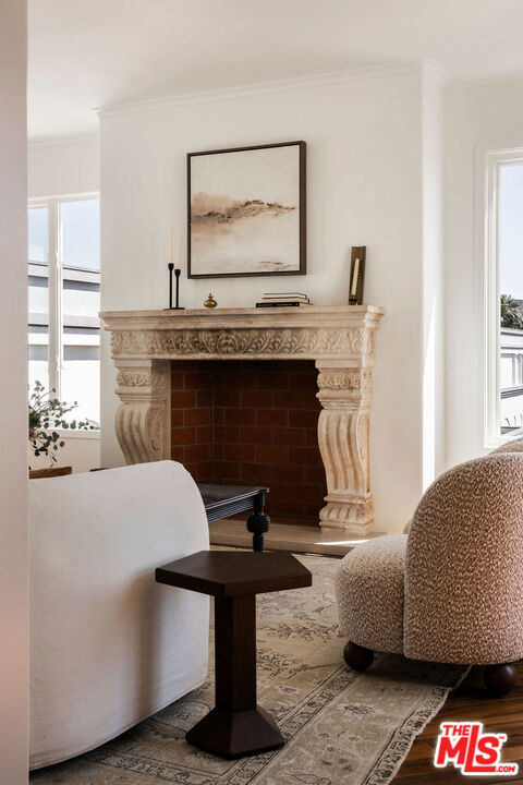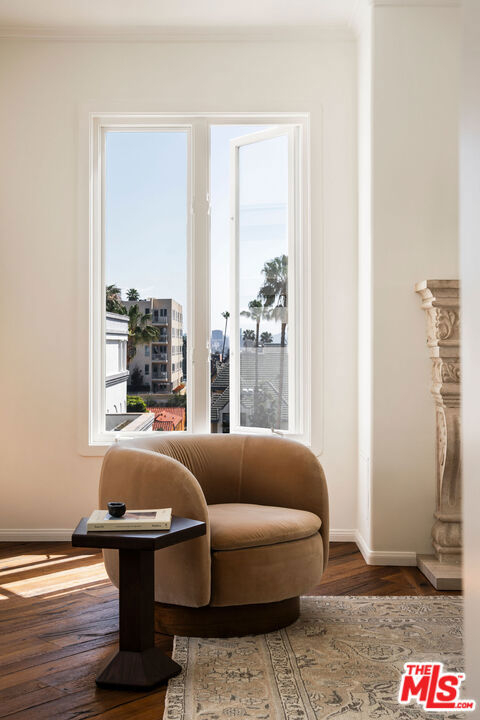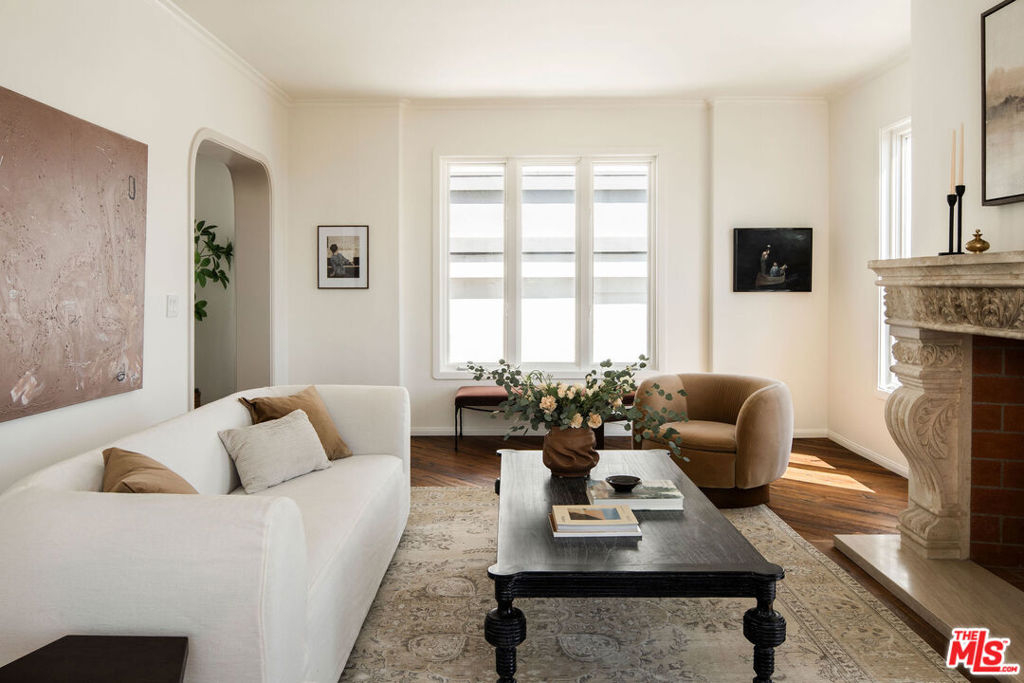 Newly renovated, this refined 1BD/1BA corner unit at the historic Granville Towers offers 1,240 sq ft of light-filled living with three exposures and sweeping South/East views of Downtown Los Angeles. Situated on the 6th floor, it benefits from significant property tax savings under the MILLS ACT. A celebrated example of French Normandy architecture, Granville Towers has long been a sanctuary for Hollywood legends including Marilyn Monroe, Rock Hudson, Nora Ephron, Iman, and David Bowie. The building offers a doorman, gated security, and beautifully maintained English gardens. Inside, classic Old Hollywood elegance meets contemporary design. Features include wood floors, a decorative fireplace, a contemporary inspired kitchen, and an oversized living room perfect for entertaining. The spacious bedroom includes a walk-in closet, all bathed in natural light. Peaceful and private yet located in the heart of the Sunset Strip just moments from Chateau Marmont, Sunset Tower, world-class dining like Horses, shopping, nightlife, and markets like Whole Foods, Trader Joe's, and Bristol Farms. This is timeless Los Angeles living at its most iconic.