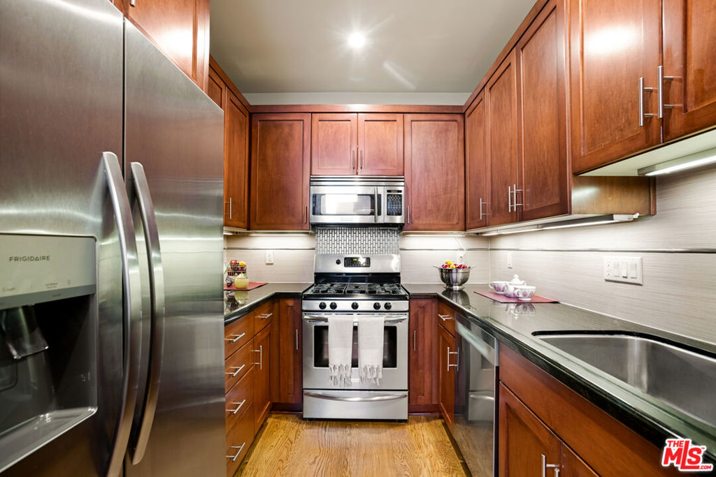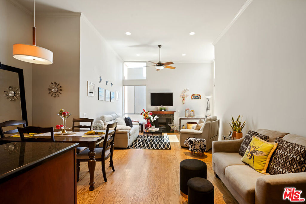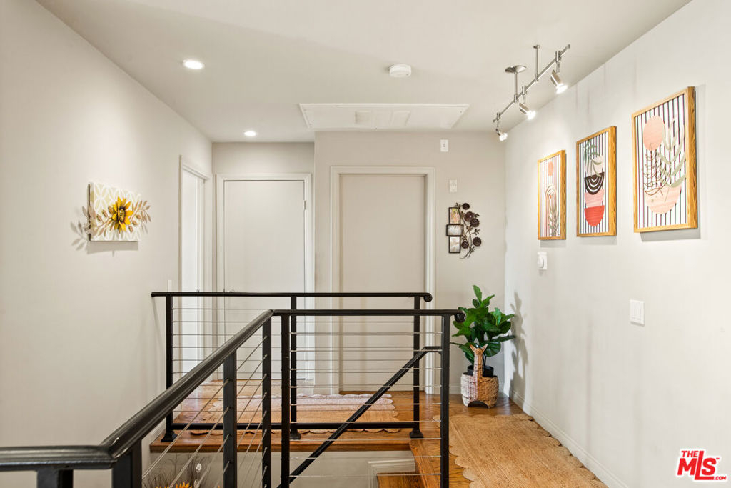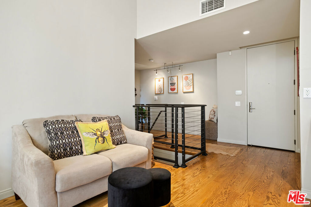 Experience elevated living in your top-floor 2 level penthouse condo, offering the desired blend of space, light, and modern design. Soaring ceilings and oversized windows flood the open-concept living space with natural light and a large patio balcony, while 2 levels provide distinct areas for relaxing, entertaining, and working from home.The sleek galley kitchen features stainless steel appliances, including new dishwasher and fridge, ample cabinetry, convenient stackable laundry and a versatile flex-space counter ideal for folding laundry or easy serving for entertaining. The dedicated private lower level primary suite, with a walk-in closet, en-suite bathroom, and sliding door access to an expansive private balcony creating a true retreat within the home.The guest bedroom with sliding doors connects directly to the main level patio balcony and the full guest bathroom with tub/shower provides convenience for guests. Highlights include new HVAC and only 1 shared wall for enhanced privacy, 2 generously sized side-by-side parking spaces and private inside and garage storage.The building underwent a full renovation in 2008 and offers a secure, new video call system, modernized fire alarm, newer siliconed resurfaced roof, a modern lobby, and wide, welcoming hallways all contributing to a quiet, well-maintained, and professionally managed community.This penthouse delivers on value, privacy, sophistication, and is located close to shopping, grocery, and restaurants. Welcome to your next level.