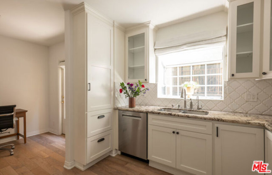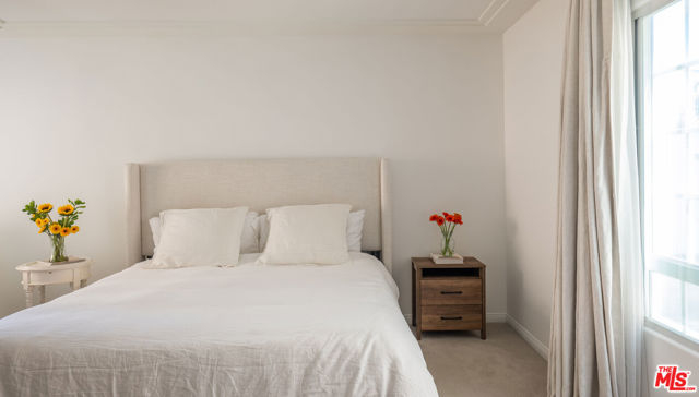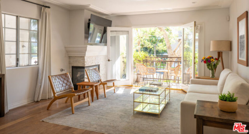 This beautifully maintained 2 bedroom, 2 bathroom condo offers 1,472 square feet of comfortable, private living in a boutique 8 unit building. With no shared walls and a second floor location in an elevator served structure, the unit lives more like a standalone home. Each bedroom is well sized with generous storage space. Primary bathroom features dual sinks, bath tub spa, and freestanding shower. Both bathrooms have white carrara marble countertops, floors, and showers. Features include a private front patio, a dedicated doggy patio with BBQ area, and in unit laundry with full size washer and dryer. A bonus nook is perfect for a home office or Peloton setup. The spacious kitchen offers stainless steel appliances and generous cabinet space. New dishwasher, range, and HVAC system were all installed in 2024. Gas meters replaced in 2023. The HOA covers building, water and sewer, common gas and electricity, trash, landscaping, elevator maintenance, and more - making ownership simple and low maintenance ownership. Ideally located between Beverly Hills and West Hollywood, in one of LA's most desirable and walkable neighborhoods. This home is move in ready and available furnished.