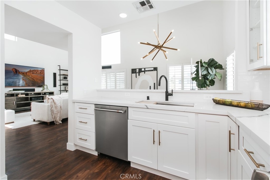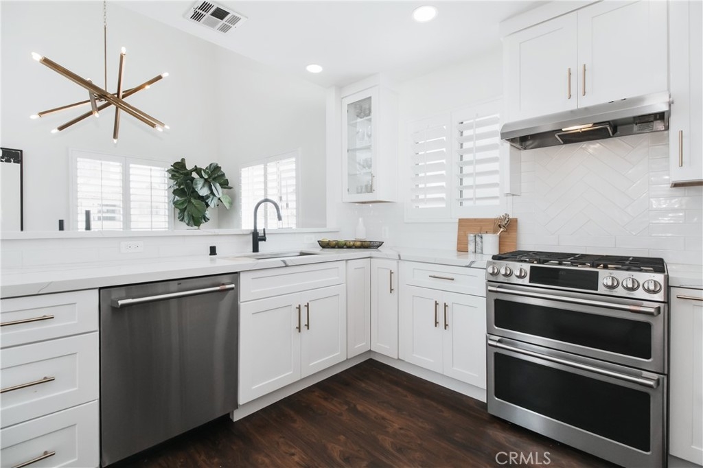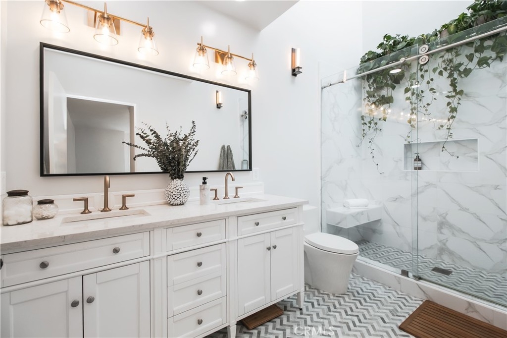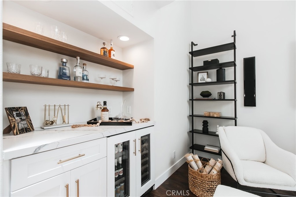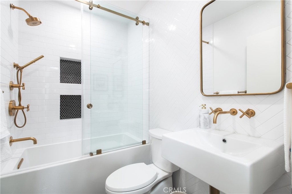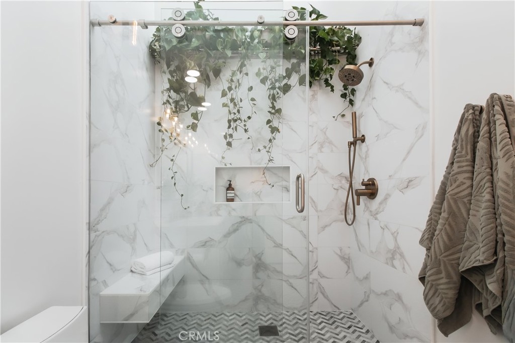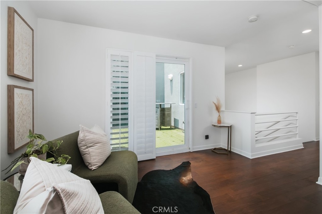 This light-filled two-bedroom, two-bath + loft condo is a rare find - your personal residence offering city-living with ample spaces for hosting and entertaining. This prime location, stylish top floor, corner-unit brings privacy and personality in equal measure. Step into your sunlit sanctuary featuring soaring two-story ceilings, skylights, and windows on three sides. The wide modern staircase sets the tone, leading to a versatile loft and two separate, private rooftop decks—perfect for city views and rooftop hangs! The main floor living areas flow together with the added ambiance of a built-in bar with a wine fridge. The living room includes track lighting and is home theater-ready with wiring for a built-in sound system. The updated kitchen is perfect for entertaining with quartz countertops, subway tile backsplash, GE Café appliances, including a 6-burner range with double oven, large workstation sink, white shaker cabinetry, and a breakfast bar. On the main floor, the primary suite checks all the boxes with a walk-in closet plus a full wall closet, built-ins, and a spa-inspired updated bathroom with dual sinks, bronze fixtures, and a show-stopping shower with custom plant ledge and a clerestory window. The second bedroom offers an efficient layout with an ample closet and a Murphy bed. The updated second bathroom brings tasteful classic black and white vibes with brass fixtures. The upstairs loft is the perfect flex space. Make it your studio, WFH zone, or personal lounge. Two private rooftop decks are your urban oasis as additional outdoor space for relaxing, hosting, and al fresco dining. Enjoy the artificial living plant wall and sunset views on the southeast patio or kick back and watch the game on the mounted TV on the east patio, both with hanging Edison lights. Features an in-unit laundry closet with side-by-side washer and dryer, under-stair storage, and an additional personal, large storage unit on the fourth floor. The secure, gated garage provides two side-by-side parking spots with an NACS EV charger. This desired location keeps you connected with the adjacent Century City Mall for endless shopping and dining, nearby UCLA and Westwood Village, and the soon-to-open Metro Line. Low HOA fees include earthquake insurance.