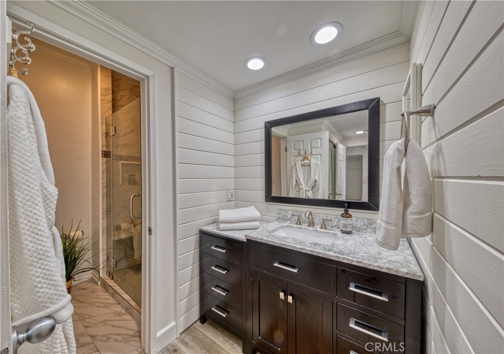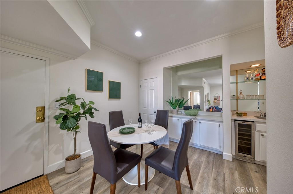 Welcome tastefully updated top-floor, single-level condo, offering a perfect blend of modern comfort and style. This spacious 2-bedroom, 2-bathroom residence boasts an open-concept floor plan, ideal for contemporary living. Step inside and be greeted by the elegant, wide-plank wood vinyl flooring and recessed lighting that flows throughout the entire unit, creating a warm and inviting atmosphere. The heart of the home is the living room, featuring a cozy gas fireplace, perfect for relaxing evenings. The kitchen showcases classic white cabinetry, sleek stainless steel appliances, bar seating and ample counter space for all your culinary endeavors. The dining area offers built-in storage along with a wet bar and a wine fridge. The unique layout provides ultimate privacy with two master bedrooms situated on opposite sides of the unit. Each bedroom is a serene retreat with its own en-suite bathroom. This unit is equipped with in-unit laundry, central air, and heating for year-round comfort. Additional perks include a dedicated storage unit within the building and two tandem parking spaces, ensuring convenience and peace of mind. Located in a prime area, you'll be just moments away from the vibrant dining and entertainment of Little Tokyo West on Sawtelle, as well as everyday conveniences like Target. With easy access to major freeways, commuting is a breeze. The HOA dues include earthquake insurance, adding an extra layer of security to your investment.