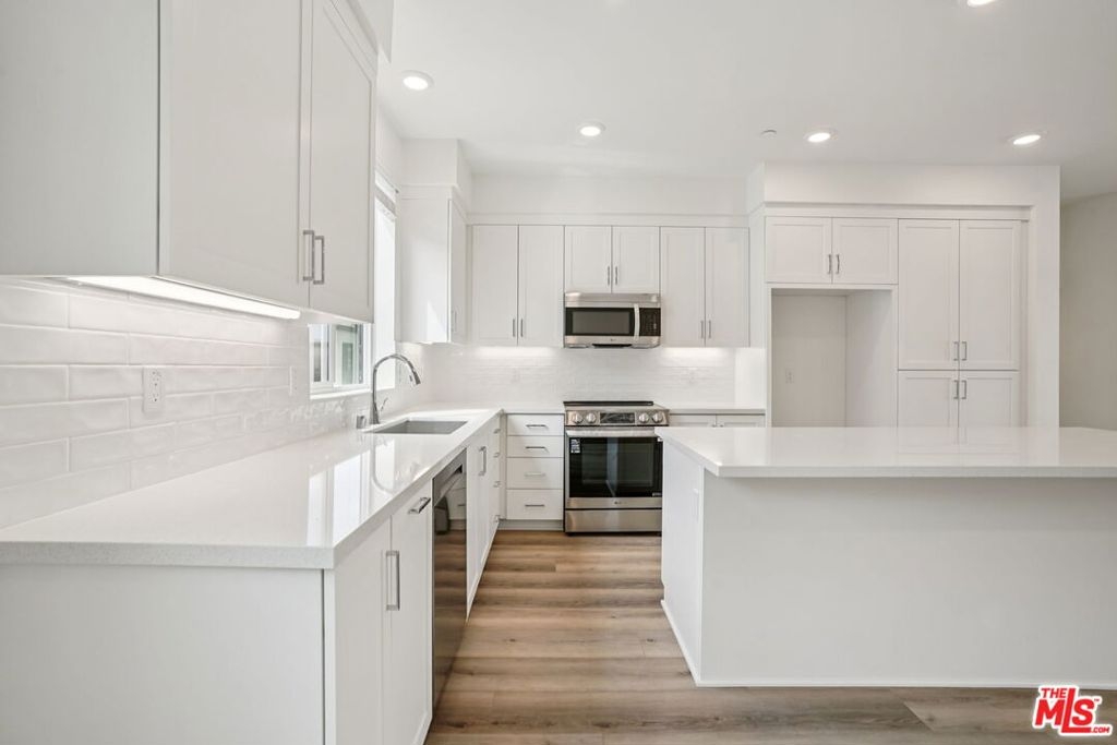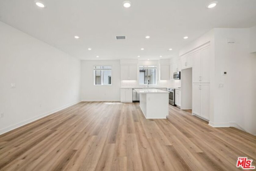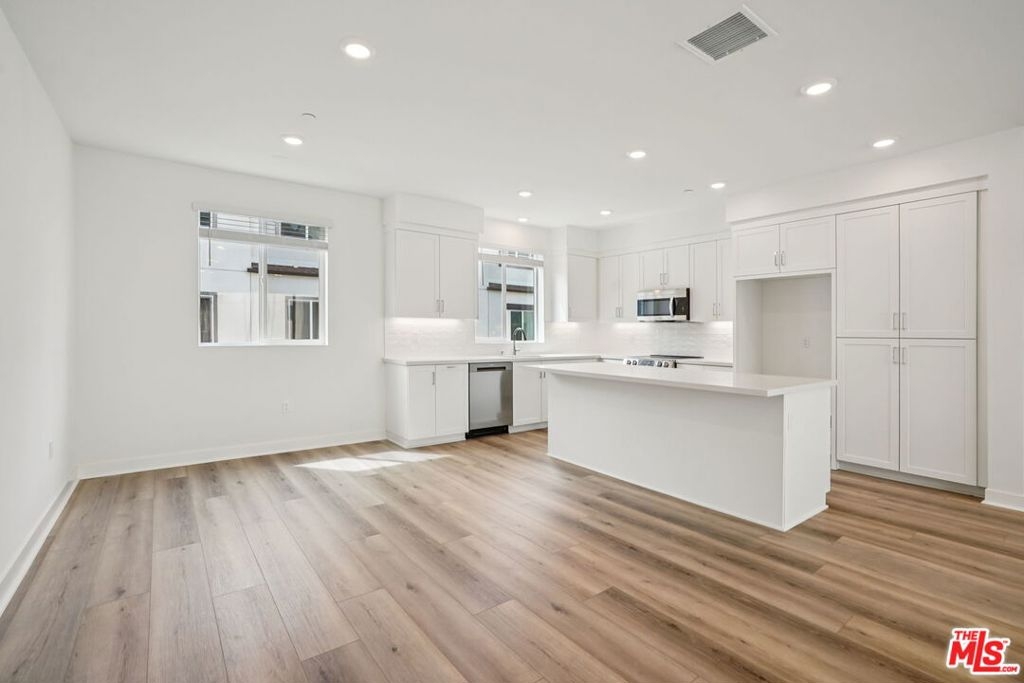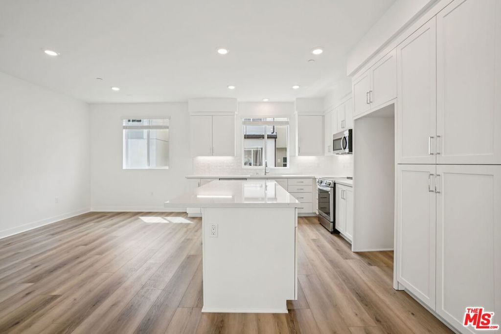 This stunning new-construction townhome at The Heights is the one you've been waiting for. Upgraded hard-surface flooring sets the tone for a sleek, low-maintenance aesthetic that flows seamlessly throughout the first floor, where a private junior primary suite offers convenience and flexibility for guests, extended family living, or a dedicated home office. The soaring ceilings of the great room create an airy, expansive feel, anchored by a striking multi-panel sliding door that opens to a generous deck, effortlessly blending indoor and outdoor living. The chef-inspired kitchen is a true centerpiece, showcasing classic white shaker cabinetry, undercabinet lighting, rich quartz countertops, a designer backsplash, and an oversized island with abundant storage. Built with energy efficiency in mind, the home features high-performance windows for superior climate control, a smart video doorbell, and whole-house faux-wood white window treatments that lend a polished, cohesive look from room to room. You'll enjoy resort-style amenities including a sparkling pool, spa, recreation center, fitness center, and peaceful passive trails. Set within one of Los Angeles' most sought-after neighborhoods, this community is celebrated for its architectural distinction, natural surroundings, and unbeatable proximity to coastal attractions, parks, and local dining. Virtual tour and photography are of the model home and used for representational purposes only.