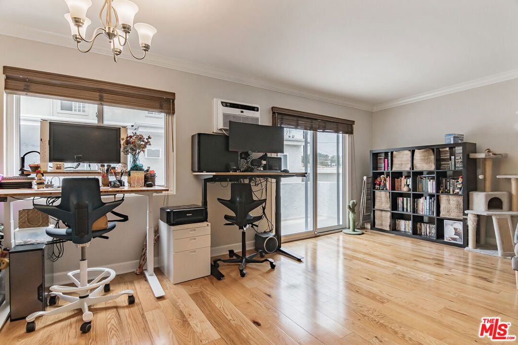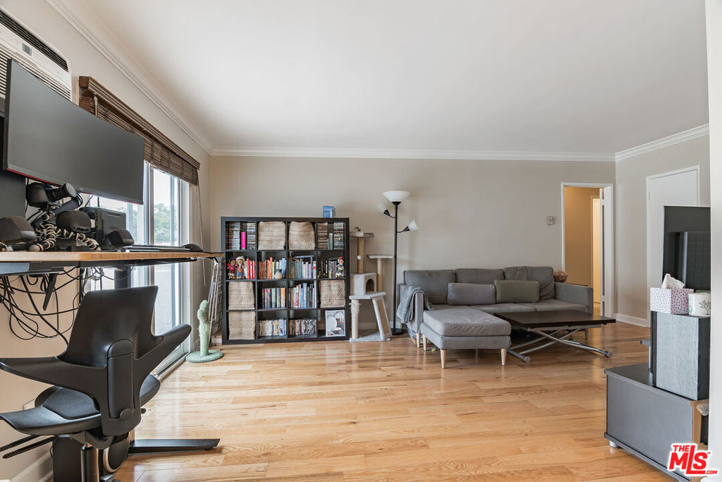 Warm and bright top floor condo nestled in a lush courtyard setting with an airy open floor plan. Large living room with balcony and hardwood flooring. Expansive yet private bedroom with walk-in closet. Bathroom is updated. Gated parking garage with the option of a 2nd parking spot as of October 2022. Short distance to Sawtelle, shopping, restaurants, and UCLA. This complex with it's low HOA fees of $313 has a new fitness room with jacuzzi and community laundry room, You'll fall in love with this charming bright top floor unit. All in a fantastic West LA location of Santa Monica blvd. Home is vacant.