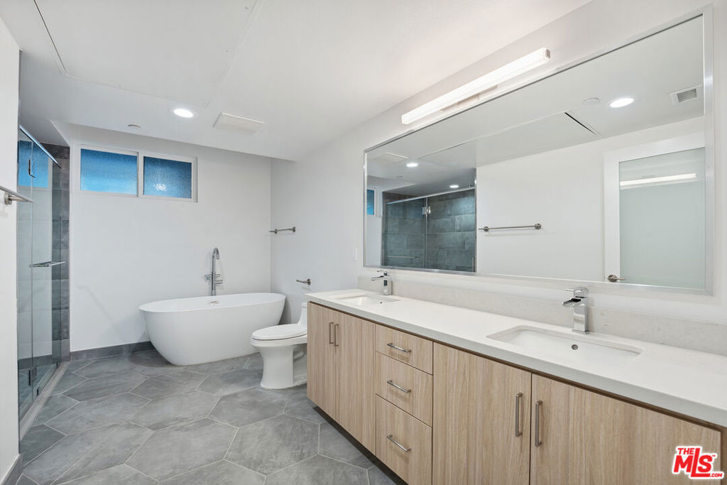 New Construction Hollywood Condominium! This beautifully built, 9-unit boutique community was crafted with quality and attention to detail throughout. Ideally located near world-class dining, shopping, and entertainment, with easy access to freeways, Metro, Griffith Park, The Greek Theatre, and the thriving Hollywood media district. Unit 102 features a 2-bedroom (both suites with almost identical bathrooms), 2.5 bathrooms, 10'-12' ft ceiling height, and offers approximately 1,500+ sq. ft. of bright, open living space. The floor plan flows naturally from the living and dining areas into a well-designed kitchen featuring a large center island, custom cabinetry, quartz countertops, and top-of-the-line GE Cafe stainless steel appliances. The primary suite provides a peaceful retreat with a spacious walk-in closet and a luxurious bathroom featuring dual sinks, a soaking tub, and a separate walk-in shower. Additional features include wide-plank engineered wood flooring, opaque glass doors, CAT 5 wiring, Decora light switches, and a full-size washer and dryer. Enjoy secured underground assigned parking for two cars, an on-site gym, and a common rear patio perfect for relaxing or dining outdoors. Move-in ready with exceptional ownership opportunity, With Favorable Terms to Make This Home More Attainable. Schedule a showing today!