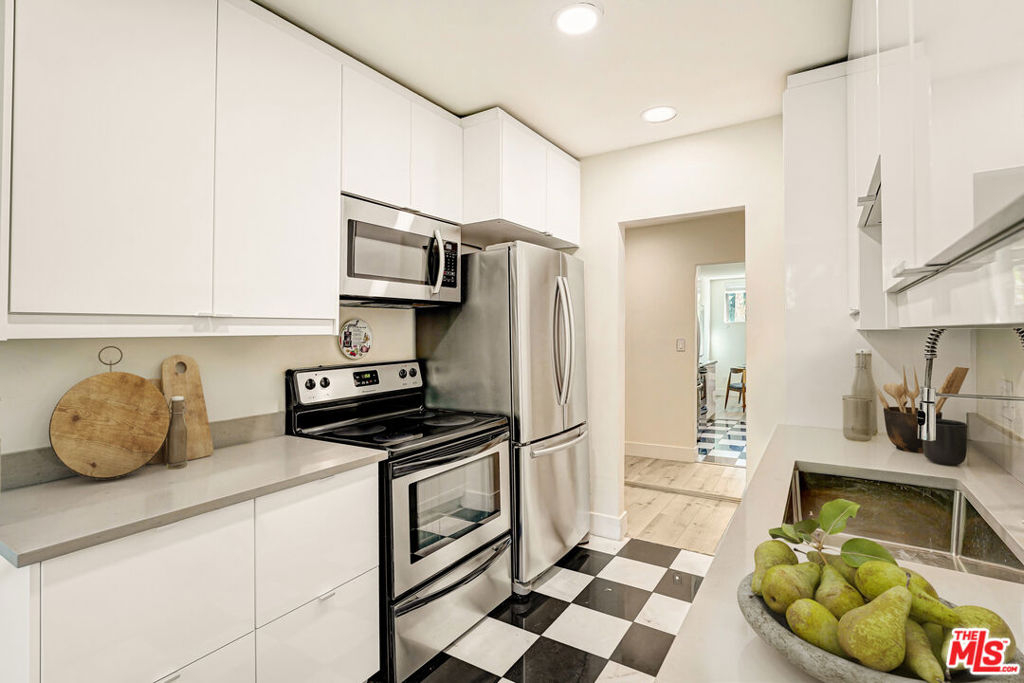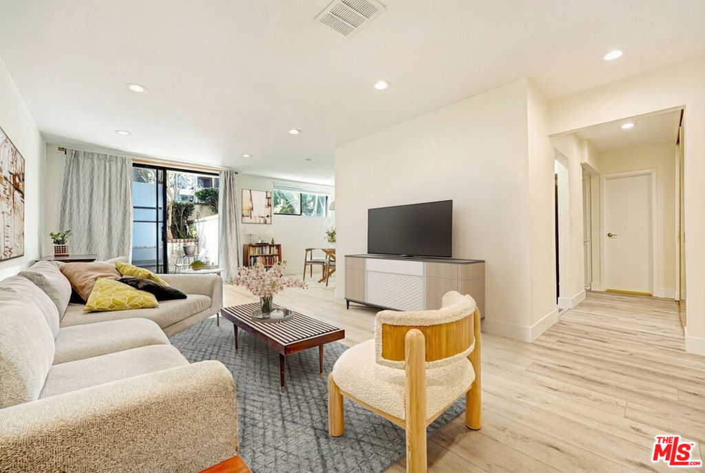 Located at the base of Runyon Canyon Park, this beautifully updated one-bedroom residence at Casa Palmero offers stylish living in one of Los Angeles' most sought-after neighborhoods.Inside, the home has been thoughtfully renovated with a clean, modern aesthetic. Waterproof wood-style flooring, recessed lighting and dual-paned windows create a bright, comfortable living space filled with natural light throughout the day.The open layout allows the living and dining areas to flow easily together, creating an inviting space to relax or entertain. The kitchen features sleek quartz countertops, stainless steel appliances and soft-close cabinetry, blending contemporary design with everyday functionality. The spacious bedroom offers a quiet retreat, while the updated bathroom brings a refined touch with modern finishes and fixtures. A standout feature of the home is the large private patio, offering rare outdoor space perfect for morning coffee, dining al fresco, or simply enjoying the Southern California air. Residents of Casa Palmero enjoy access to community amenities including two fitness rooms and a sauna, while the swimming pool and spa are currently in the final stages of a complete remodel, soon to offer a refreshed space for relaxing and enjoying the Southern California lifestyle.Just moments from the hiking trails of Runyon Canyon, and close to some of the area's best restaurants, nightlife, markets, and everyday conveniences, this home offers the perfect balance of city energy and peaceful retreat.