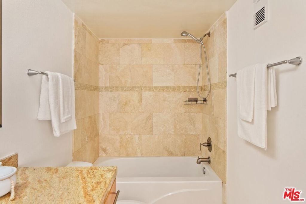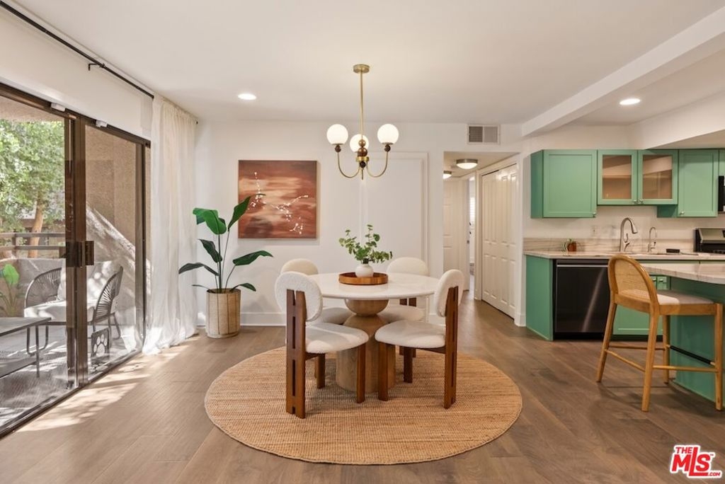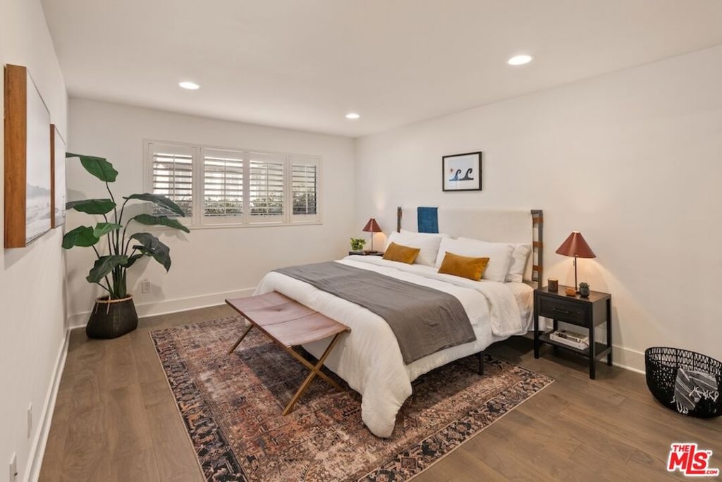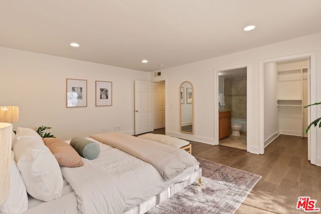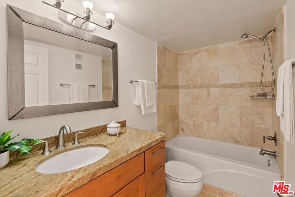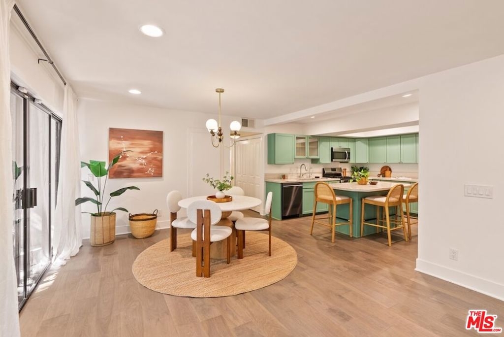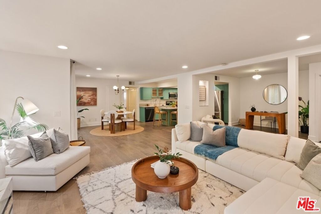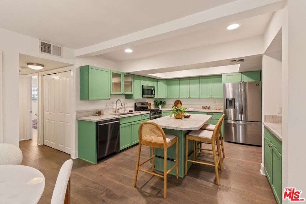 Tucked away on a quiet street just blocks from the dynamic energy of Sawtelle, this exquisitely reimagined corner residence exudes an air of effortless sophistication. Though technically a first-floor unit, it sits elevated above the street at a second-story level, offering privacy and a commanding perspective. Spanning nearly 1,600 square feet, this moody, design-forward 2-bedroom plus den, 2.5-bathroom home is a study in contrasts where rich textures, deep hues, and warm natural elements converge to create an intoxicatingly stylish atmosphere. Step inside, and a striking green marble entryway sets the tone, leading to an expansive living space anchored by a custom-tiled fireplace wrapped in raw, organic stone - an artful centerpiece that radiates quiet luxury. The open-concept design seamlessly transitions into a dining area and a grand chef's kitchen, where deep sage cabinetry, veined marble countertops, and professional-grade stainless steel appliances invite both culinary creativity and intimate gatherings. A sprawling island doubles as an informal dining space, perfect for slow morning coffee rituals or late-night conversations over a bottle of Syrah. Adjacent to the living space, a versatile den area offers endless possibilities whether envisioned as a refined home office, an artist's studio, or a stage for a grand piano. Expansive glass doors lead to a large private balcony, where lush, leafy views create an intimate, natural backdrop - an unexpected sanctuary in the heart of the city. The ambiance is equally intoxicating in the primary suite, which boasts its own secluded balcony, a generous walk-in closet, and an ensuite bath clad in travertine and granite, embodying an aesthetic both timeless and contemporary.This freshly painted home is adorned with brand-new hardwood floors, curated lighting fixtures that cast a sultry glow, and recessed lighting that accentuates every carefully chosen detail. A dedicated laundry closet with side-by-side washer and dryer adds to the home's effortless convenience.Set within a meticulously maintained and secured building with a gated garage, two parking spaces, controlled entry, and security cameras, this residence offers both sanctuary and accessibility. Just moments from Sawtelle's most celebrated eateries and boutiques, with seamless access to the 405 and 10 freeways, this is urban living at its most magnetic - a rare fusion of style, substance, and soulful ambiance.