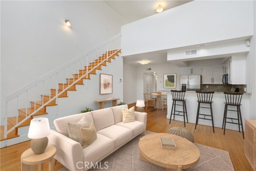 Welcome to West LA! This top floor, townhome-style 1bd/1ba + closeted loft condo, sits in a cozy, 10-unit building close to everything! Featuring: Lots of natural light for a bright, upbeat vibe; Upstairs loft w/closet for a bedroom, gym, office, etc, with access to the private, sun-drenched terrace (this is an awesome spot); Living Room with soaring ceilings & spacious feel; Large Master Bedroom w/dual-paned windows & plantation shutters; Kitchen with stainless steel appliances, great counter space, eating area & pantry/storage; Shower-in-tub with subway tile in the previously renovated bathroom; In-unit washer & dryer in their own "hidden" nook; bamboo flooring (redo to your taste or enjoy its current, shabby-chic feel); Gated tandem parking for 2 cars; Low HOA dues. Open your front door and see the sunshine, not a stuffy hallway. EXCELLENT LOCATION: Close to LA's Westside, Century City Mall, West Hollywood, Beverly Hills, restaurants, clubs, museums, shops & entertainment. This building is SB326 compliant! See the virtually staged pictures for decor ideas and schedule a showing!