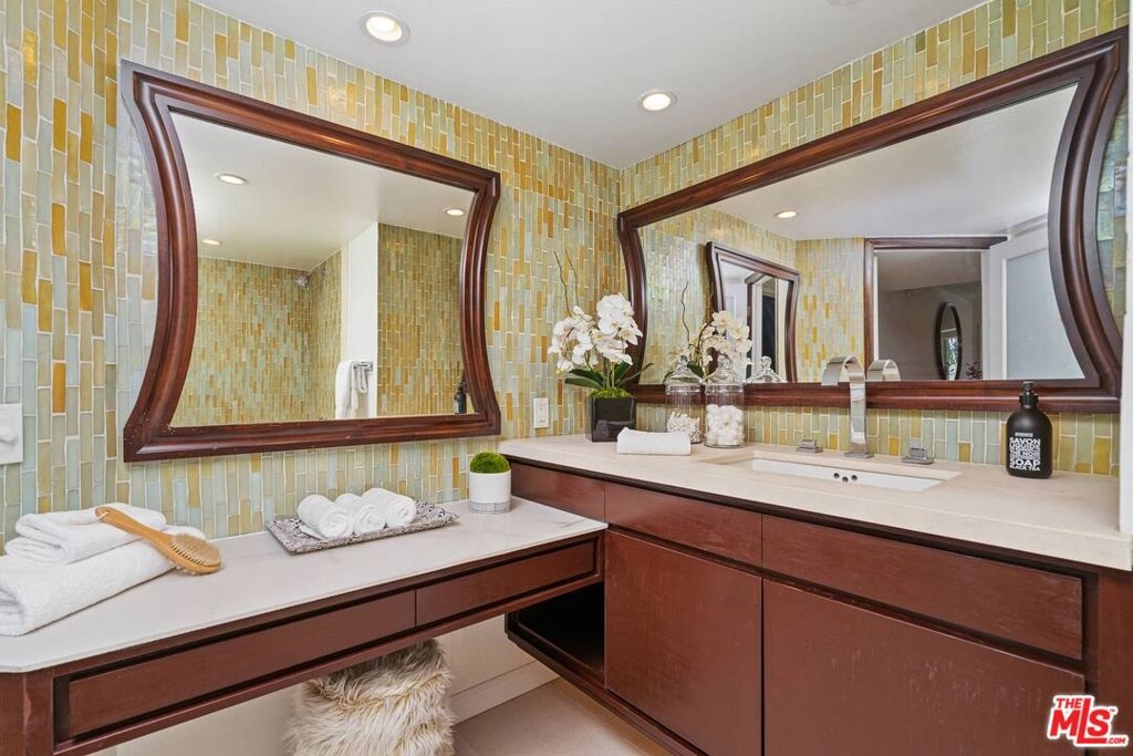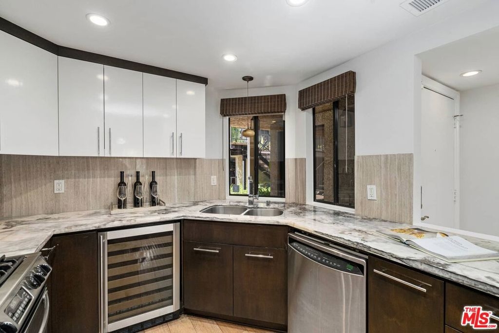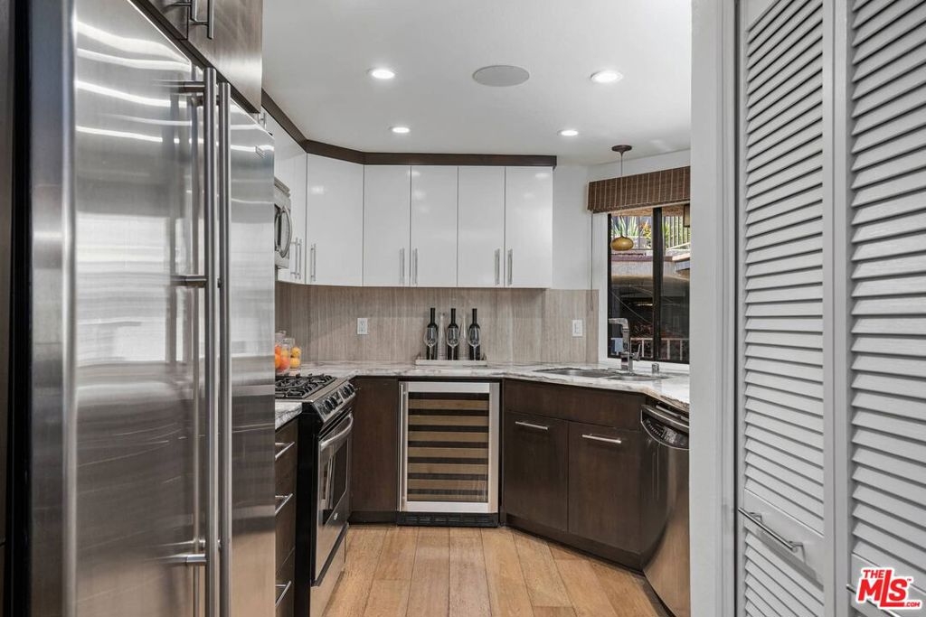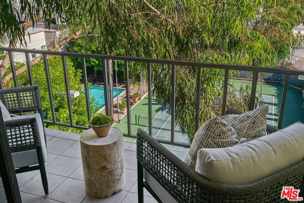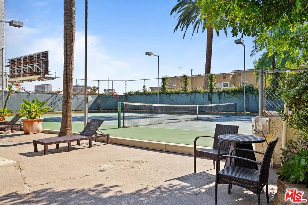 Resort living in the heart of Hollywood! Nestled in the hills adjacent to Whitley Heights, this small 32 unit complex has big amenities - Tennis Court, Racket Ball Court, Gym, Pool, Hot Tub. The well-appointed 2 BR + 2 BA condo features a living room with wood floors, fireplace, and balcony with views of Hollywood. Additionally, there's a kitchen with onyx countertops, gas stove, wine refrigerator, and washer/dryer. The primary suite has a walk-in closet and a spacious bath with spa tub, plus the secondary bedroom has a built-in Murphy bed. There are two side by side gated parking spots with elevator access, multiple guest spots, shared storage, and HOA earthquake insurance. Best of all, this convenient location is close to all - Cahuenga restaurants, shops, and nightlife, as well as major TV and film studios, Runyon Canyon, Pantages Theater, and The Hollywood Bowl!