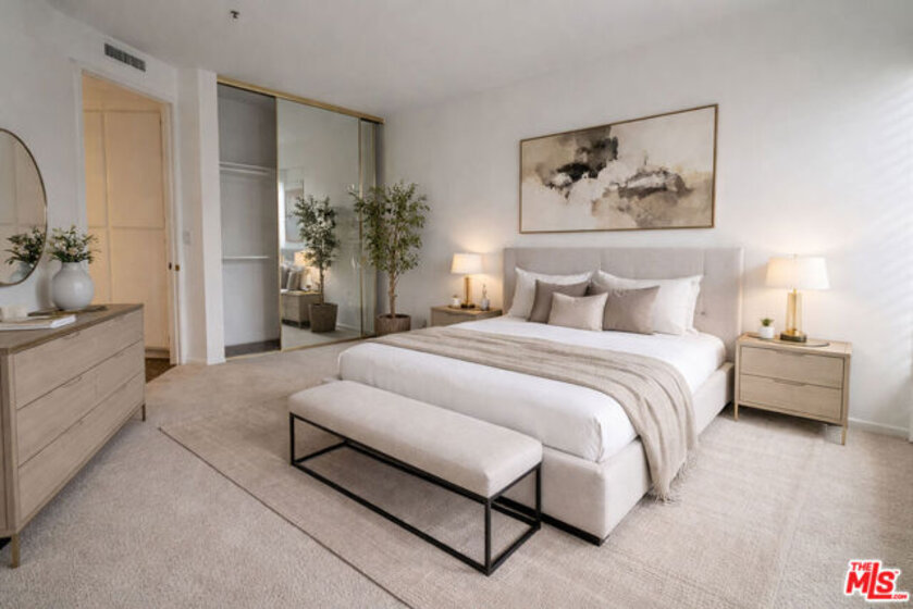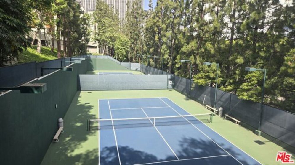 An exceptional opportunity to experience refined, resort-style living at the prestigious Century Park Place. This elegant 2-bedroom, 2-bath residence is privately positioned and surrounded by lush, manicured grounds, with tranquil greenbelt and tree-top views enjoyed from its inviting balcony. A striking river rock entry introduces a sophisticated interior where clean lines and thoughtful design come together seamlessly. The sleek kitchen is appointed with Caesarstone countertops, a custom built-in breakfast table and bench overlooking the courtyard's fountain, abundant cabinetry, and newer stainless steel appliances --blending style and functionality. The expansive, south-facing living room is bathed in natural light and anchored by a corner fireplace, while the open dining area, enhanced by custom built-ins and a contemporary chandelier, creates an effortless setting for both intimate dinners and stylish entertaining. A thoughtfully designed split-bedroom layout offers optimal privacy, with each bedroom featuring its own walk-in closet. The serene primary suite overlooks treetop and greenbelt vistas and is complemented by dual vanities and a spacious shower with a built-in bench. The secondary bedroom includes an additional wall closet and access to a full bath. A full-size washer and dryer are discreetly tucked into a dedicated closet. Residents of Century Park Place enjoy an unparalleled lifestyle with 24-hour guard-gated security, beautifully landscaped grounds, and an array of resort-caliber amenities including 3 pools and 3 spas, multiple tennis courts, pickleball court, a basketball court, fully equipped fitness centers in each building, and a well-appointed clubhouse, all just moments from the world-class shopping, dining, and entertainment of Westfield Century City. HOA fee includes internet, cable, gas, water, sewer and trash.
