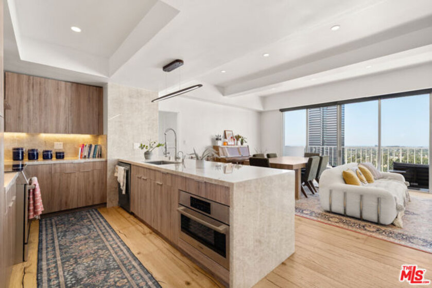 Perched high above the city in the iconic Century Park East, this rare penthouse residence presents a truly elevated lifestyle. Fully remodeled in 2025, this 2-bedroom, 2-bathroom home spans 1,053 sq. ft. of refined living space, designed with modern elegance and effortless flow. An open-concept kitchen anchors the home, showcasing custom wood cabinetry, sleek quartz countertops, and breathtaking views that extend to the ocean. Floor-to-ceiling windows frame dazzling city lights from every room, while raised ceilings, rich wood floors, and abundant natural light create an atmosphere of sophistication and warmth. The thoughtfully designed layout places one bedroom on either side of the living room, ensuring privacy, while the west-facing private balcony offers the perfect vantage point for golden sunsets. Century Park East is renowned for its full-service lifestyle, offering 24-hour valet, concierge, doorman, and guest parking. Residents enjoy resort-style amenities including an Olympic-size heated pool, tennis court, state-of-the-art fitness center, dog park, children's playground, and beautifully landscaped grounds. Set in the heart of Century City, this home is just moments from world-class shopping, dining, and entertainment at Westfield Century City, with Beverly Hills and Westwood only minutes away. Penthouse opportunities in this building are exceedingly rare making this an exclusive chance to own a piece of Los Angeles luxury living.