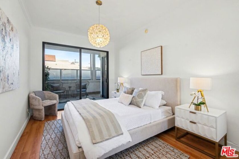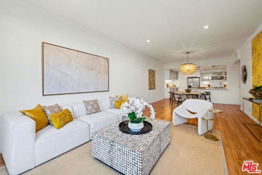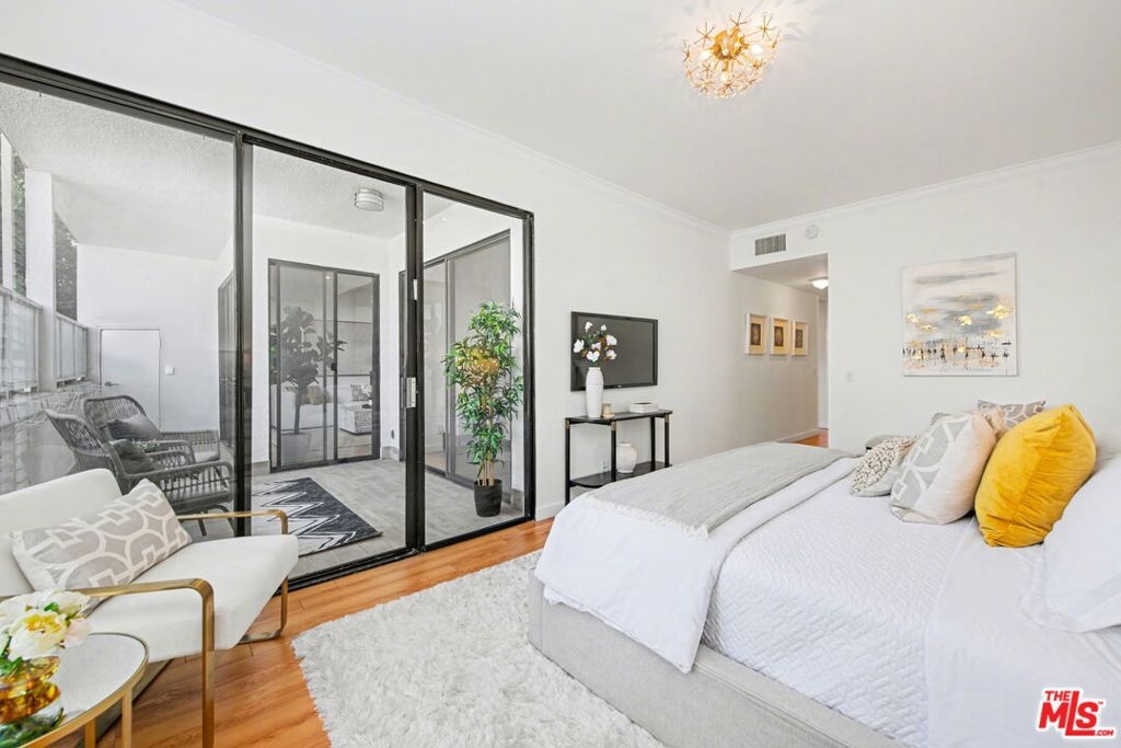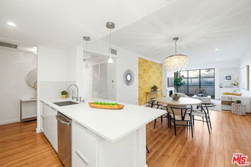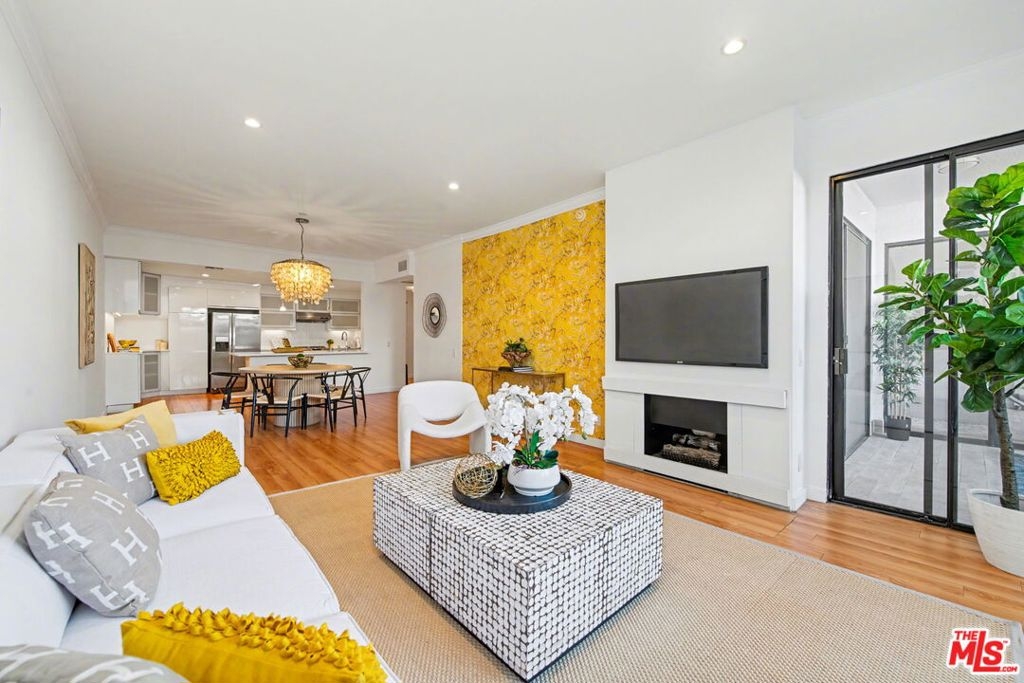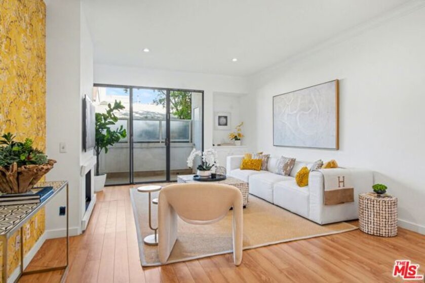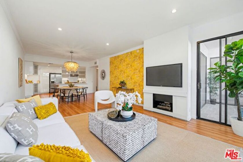 Chic Century City Adjacent updated Contemporary 2 bed/2 bath. Formal entry with large entry closet leads to open floor plan living.Totally remodeled open kitchen with newer cabinetry, stainless steel appliances and breakfast bar overlooking dining room with living room with gas fireplace and double sliding doors to private, large covered balcony with tile flooring and storage closet that can be accessed by both bedrooms as well. 2nd bedroom with sliding door to patio, mirrored sliding door closet with custom shelving. 2nd bathroom with newly updated vanity and tile flooring and laundry area and access to full bathroom shower. Primary suite with oversized walk-in closet with custom shelving and spacious primary bedroom with sunny corner large windows with plantation shutters, views of Century City and sliding door to patio. Primary bathroom with dual basins, all newly updated bathroom with tiled shower and flooring finishes and built in cabinet for linens and toiletries. Additional features include central ac/heating, laundry in-unit, contemporary laminate flooring throughout. Building includes pool/spa, pets ok, tandem 2 car parking and Earthquake Insurance included in HOA dues. Ideal proximity to Westfield Century City Mall, UCLA and Beverly Hills. This turnkey condo is ready to go!