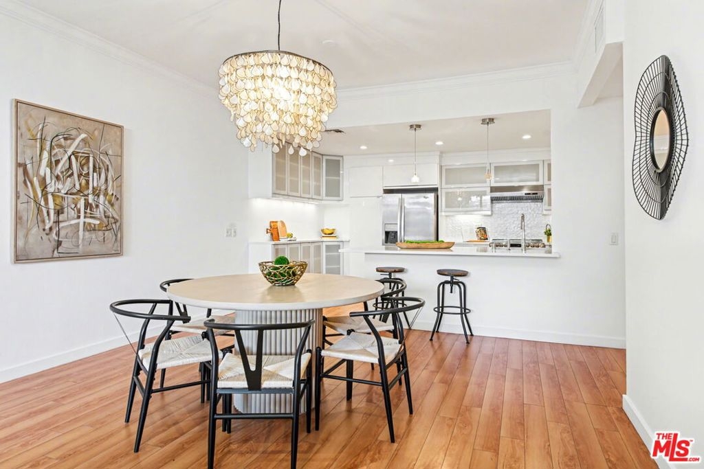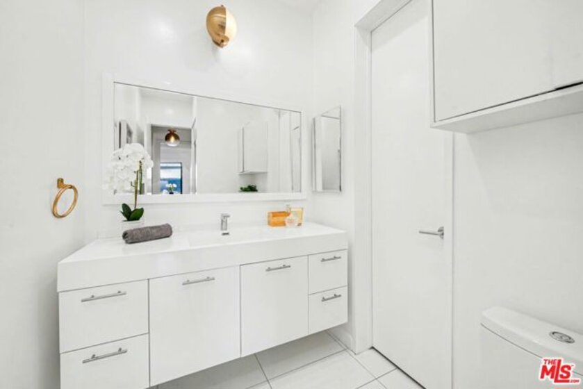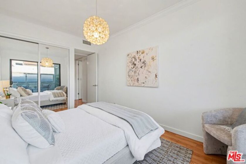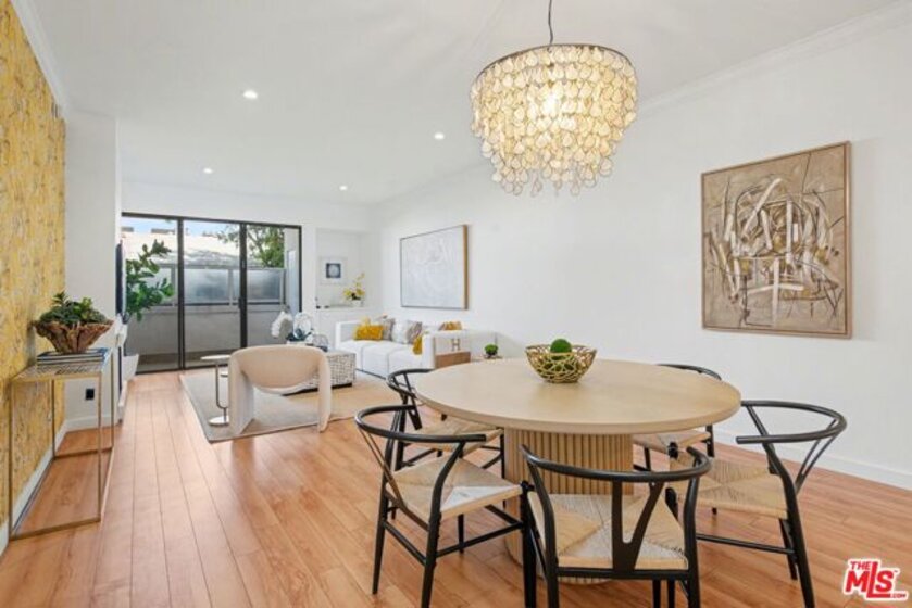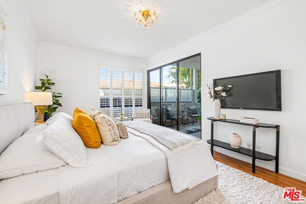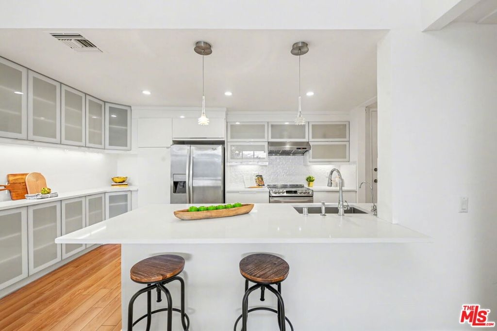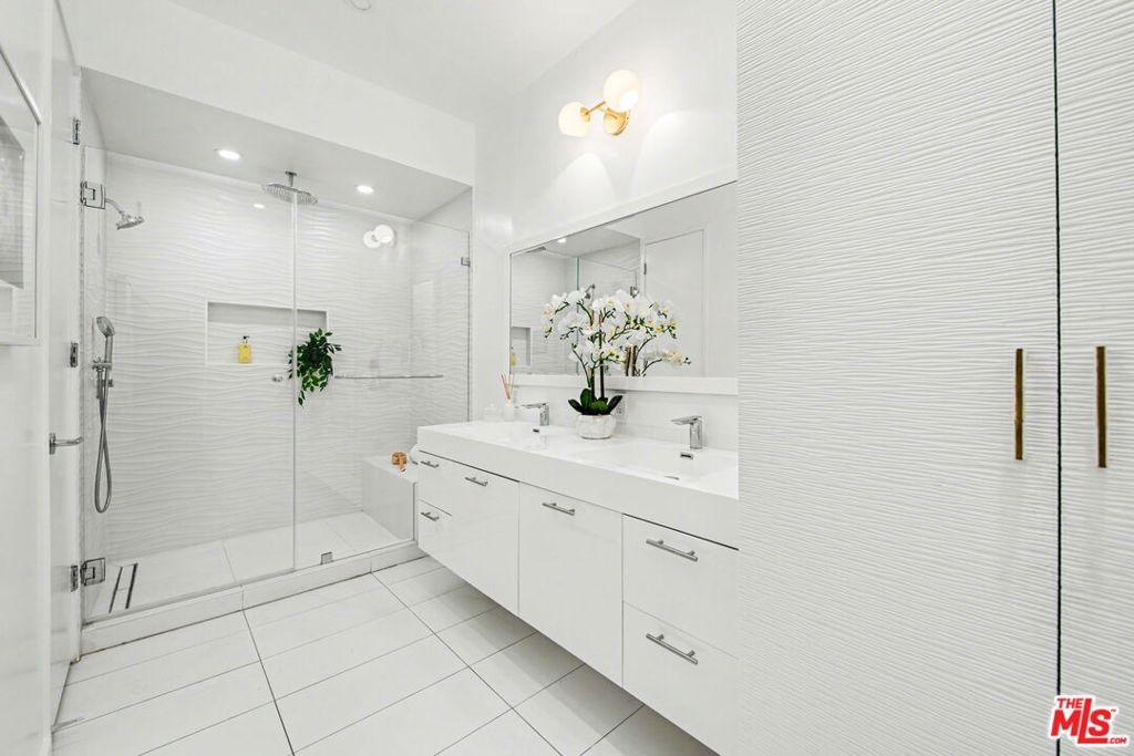 Chic Century City Adjacent updated Contemporary 2 bed/2 bath. Formal entry with large entry closet leads to open floor plan living.Totally remodeled open kitchen with newer cabinetry, stainless steel appliances and breakfast bar overlooking dining room with living room with gas fireplace and double sliding doors to private, large covered balcony with tile flooring and storage closet that can be accessed by both bedrooms as well. 2nd bedroom with sliding door to patio, mirrored sliding door closet with custom shelving. 2nd bathroom with newly updated vanity and tile flooring and laundry area and access to full bathroom shower. Primary suite with oversized walk-in closet with custom shelving and spacious primary bedroom with sunny corner large windows with plantation shutters, views of Century City and sliding door to patio. Primary bathroom with dual basins, all newly updated bathroom with tiled shower and flooring finishes and built in cabinet for linens and toiletries. Additional features include central ac/heating, laundry in-unit, contemporary laminate flooring throughout. Building includes pool/spa, pets ok, tandem 2 car parking and Earthquake Insurance included in HOA dues. Ideal proximity to Westfield Century City Mall, UCLA and Beverly Hills. This turnkey condo is ready to go!
