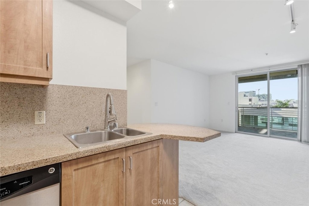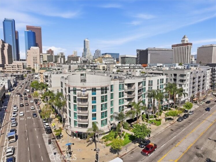 Located in the historic Little Tokyo district of Downtown Los Angeles, this desirable 55+ condominium is situated in arguably one of the best locations within the Teramachi building. This updated 2-bedroom, 2-bathroom unit features a south-facing orientation that fills the living spaces with natural light. Enjoy serene courtyard views from your private balcony, offering both tranquility and privacy. With new carpet and fresh interior paint, the home showcases a spacious floor plan that includes a large walk-in closet, central air and heat, in-unit washer and dryer, and a well-equipped kitchen with stainless steel appliances, granite countertops, and a convenient dining counter. The unit includes one assigned parking space in a gated, controlled-access garage, along with additional guest parking for visitors. Teramachi residents enjoy resort-style amenities, including a beautifully landscaped courtyard with ponds and waterfalls, a fitness center, sauna, guest lounges, a two-story community room, BBQ areas, and 24-hour front desk security station - all just moments from Little Tokyo, the Arts District, Grand Central Market, Dodger Stadium, and more.