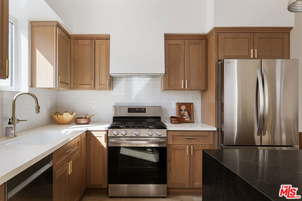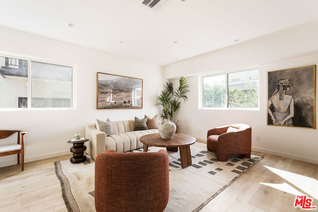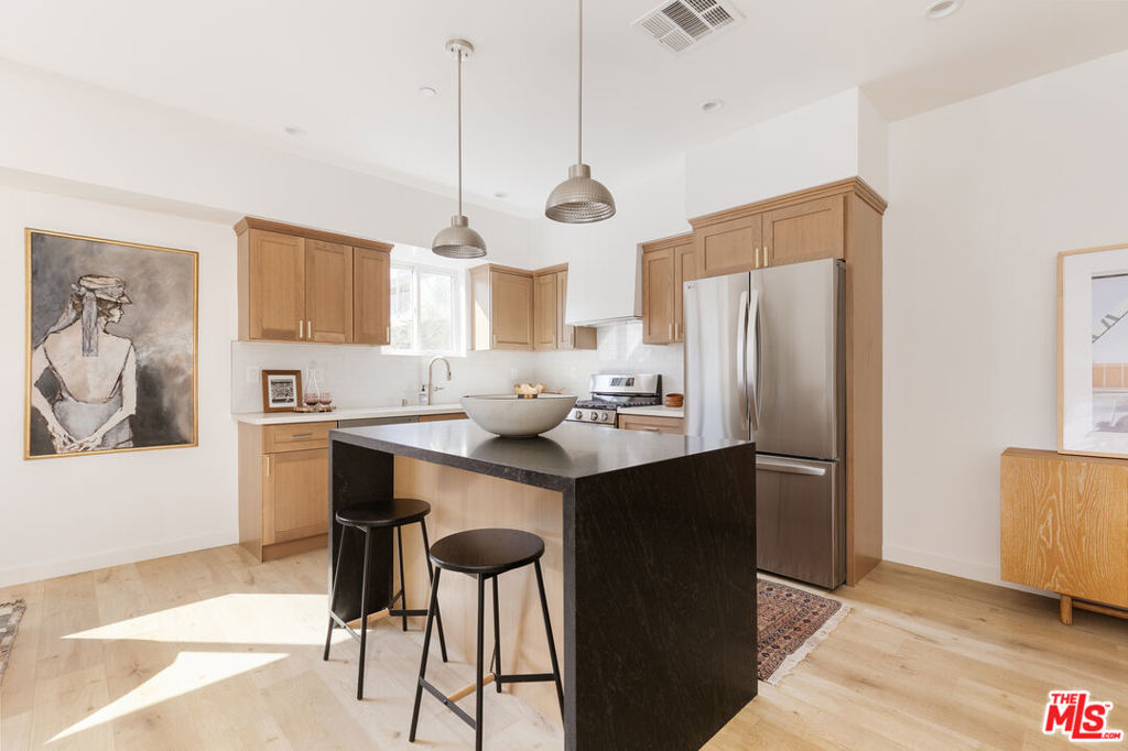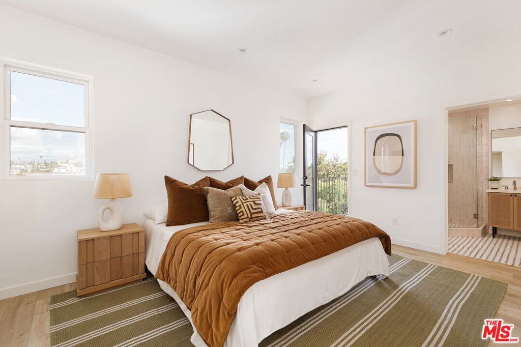 A newly constructed 5-bedroom, 5-bath residence in the heart of Echo Park, offering modern design, warm finishes, and views of Downtown Los Angeles and surrounding treetops. Designed with a clean, contemporary aesthetic, the home is filled with natural light. The main living spaces connect seamlessly, with a large kitchen featuring an island for meals or entertaining, opening directly to the living area, suited for both everyday living and hosting. The kitchen includes stone surfaces, ample cabinetry, and thoughtful detailing. Bathrooms feature tile, clean lines, and a cohesive modern finish. Five well-proportioned bedrooms provide flexibility and privacy, four with en-suite bathrooms and generous closet space, creating a comfortable sense of separation throughout the home. Outdoor spaces are a highlight. One private balcony off a bedroom captures direct views of Downtown Los Angeles, while a second expansive balcony spans the length of the building, large enough for dining, entertaining, or relaxing, and coupled with those same incredible views. Additional features include in-unit washer and dryer, HVAC, owned solar panels, and a private two-car garage. Located near Vinovore, Be U, Doto, and Cafecito Organico, with easy access to both Echo Park and Silver Lake. This is truly an exceptional home!