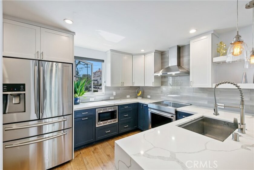 This beautiful end unit townhome is turnkey, just steps from the beach, and features a massive, private rooftop deck to take in the views, the sun, relax or entertain! As you enter into the stylish space, you’ll immediately fall in love with the open floor plan and the modern, updated fixtures. In the kitchen, you can enjoy 2 tone kitchen cabinets, stylish pendant lights, an oversized sink, quartz countertops with a waterfall island peninsula, stainless steel appliances and a full-size LG washer and dryer. The full bathroom downstairs features a large soaking tub, elegant tiling and a custom-built vanity. The bathroom upstairs feels like a spa oasis with river rock flooring, a walk-in waterfall shower with a frameless glass enclosure and a Solatube skylight. The property was renovated down to the studs in 2018 with new: plumbing, electrical wiring, sub-panel, windows, skylights, top-of-the-line Mitsubishi electric mini-split HVAC system (in every room), blackout shades, and Lutron smart light switches. The living room features an in-wall speaker system with L/R surround sound speakers and a hidden A/V storage space to keep electronics and wires out of sight. This 8-unit community also recently installed a new roof and gutters in 2024. Enjoy the two car tandem parking spots in the garage with an EV charger. And for nature lovers, you’ll be pleased to find out that the home is not only just steps from the beach but also only steps to a canal and designated wildlife preserve. Throughout the winter through the spring you are likely to spot Blue Herons, Cormorants, Canadian Geese, and Snowy Egrets among many other feathered friends. This is the life you’ve always dreamed about!