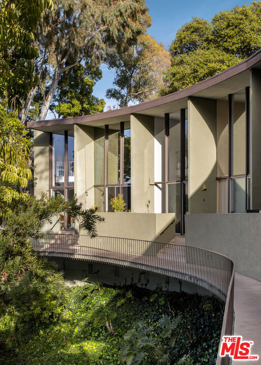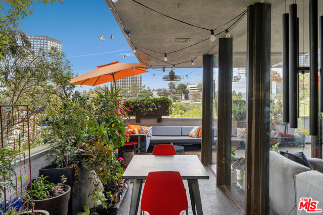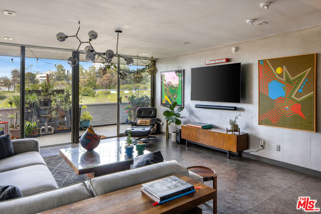 Architectural View Condo - Experience the fusion of mid-century design, captivating style, and world-class architecture in this unique one-of-a-kind residence designed by famed architect Ray Kappe, FAIA. The open-concept layout is bathed in natural light, accentuated by wrap-around floor-to-ceiling glass that frames breathtaking valley and mountain views. More recent interior updates by designer John McClain seamlessly blend eclectic and fun elements while preserving the original design's essence, earning the home features in prominent media, including Elle Decor and published in 'The Designer Within' and 'House Design Ray Kappe'. The kitchen features stone countertops, stainless appliances, floating shelving and a mirror tiled backsplash. A spacious one-bedroom with dual-vanity bath, in-unit laundry and additional work-from-home office space with durable grey-panel flooring throughout. A wraparound terrace of over 400 sqft offers a private retreat, providing stunning 180-degree views, creating true indoor/outdoor living. The generous patio is large enough for an alfresco living room, dining room, garden area and more. As an end unit, it shares just one wall, no one above or below, ensuring additional quiet and privacy. Amenities include a pool, guest parking, and additional unit parking and storage space. Located just minutes from the shopping, dining, and nightlife of Hollywood and Studio City, as well as attractions like the Hollywood Bowl, The Ford Theatre, Universal Studios with viewable fireworks displays, and more. The HOA has just completed significant upgrades for balcony structural compliance SB326, EQ retrofit, new railings and walkways, new high efficiency cool roof, hot water tank. As well as in-unit upgrades including new HVAC (heat & a/c) with Nest control. HOA is in the process of registering the building as a Historical Landmark, the building has already been designated as eligible for the National Register and California Register of Historical Places.