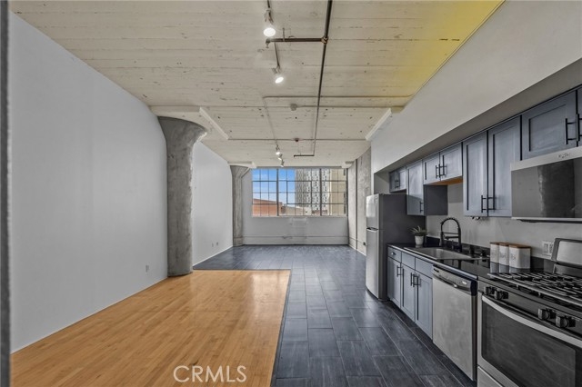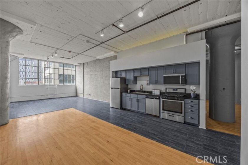 Welcome to 420 S. San Pedro, a stunning one-bedroom, one-bath loft located in the vibrant Little Tokyo neighborhood, poised to benefit from the excitement of the upcoming 2028 Olympics. Originally built in the 1920s as the historic Westinghouse Electric elevator factory, Little Tokyo Lofts was transformed into stylish condominiums in 2005. This urban oasis features an open-concept layout with high ceilings and beautiful concrete columns that create a stylish and modern ambiance. Large windows fill the space with natural light, enhancing the inviting atmosphere. The modern kitchen is equipped with stainless steel appliances, ample counter space, and features that make cooking and entertaining a delight. Inside the unit, you’ll find the convenience of a stackable washer and dryer, along with central air conditioning and heating to ensure your comfort year-round. Residents enjoy resort-style amenities, including a heated pool and spa for relaxation, an open-air lounge and patio perfect for socializing, a BBQ area for outdoor gatherings, and a gym for fitness enthusiasts. Your furry friends will love the dedicated dog run, and with 24-hour security and gated access, you can feel secure at all times. The property also includes two designated parking spaces—one equipped with an EV charger—and plenty of guest parking for added convenience. Step outside, and you'll find yourself immersed in the rich cultural tapestry of Little Tokyo, with an array of dining, shopping, and art experiences right at your doorstep. As the neighborhood prepares for the global attention and exciting developments brought by the Olympics, this loft presents a unique opportunity for both stylish living and investment. Don’t miss your chance to be part of this dynamic community during one of the biggest events in sports history!
