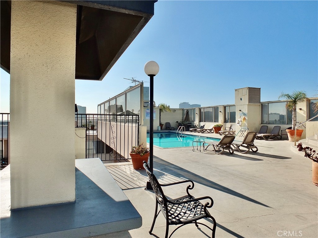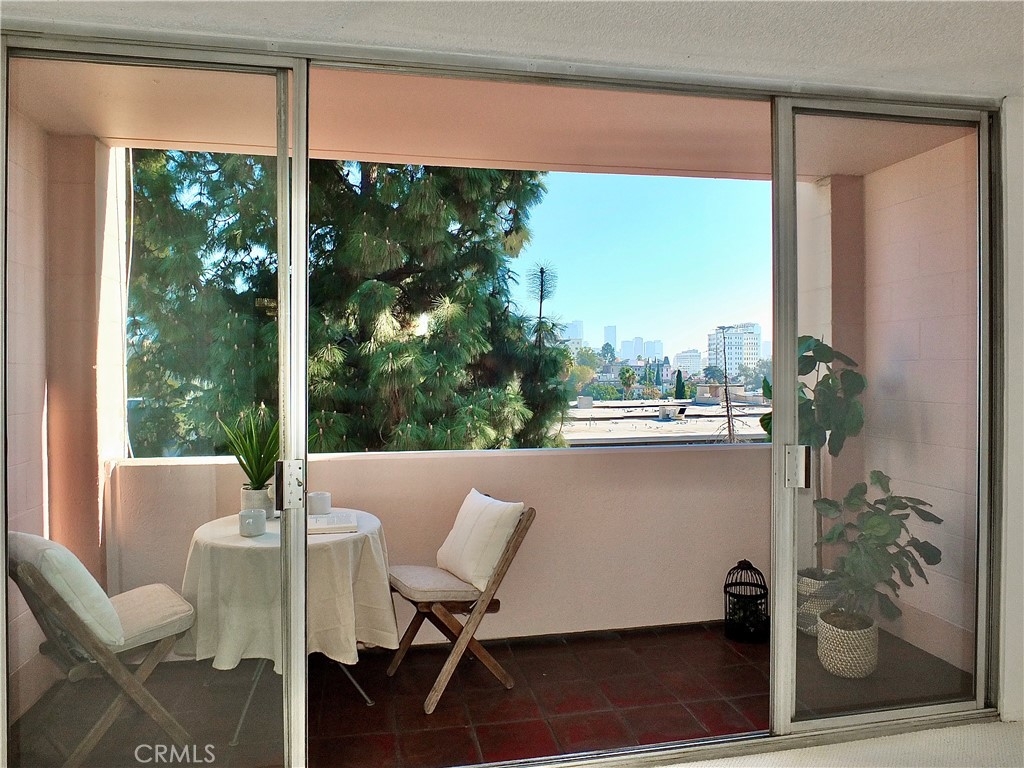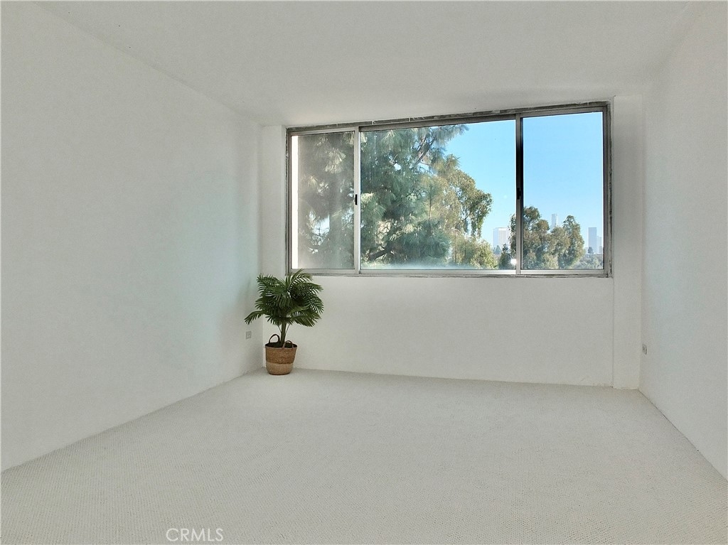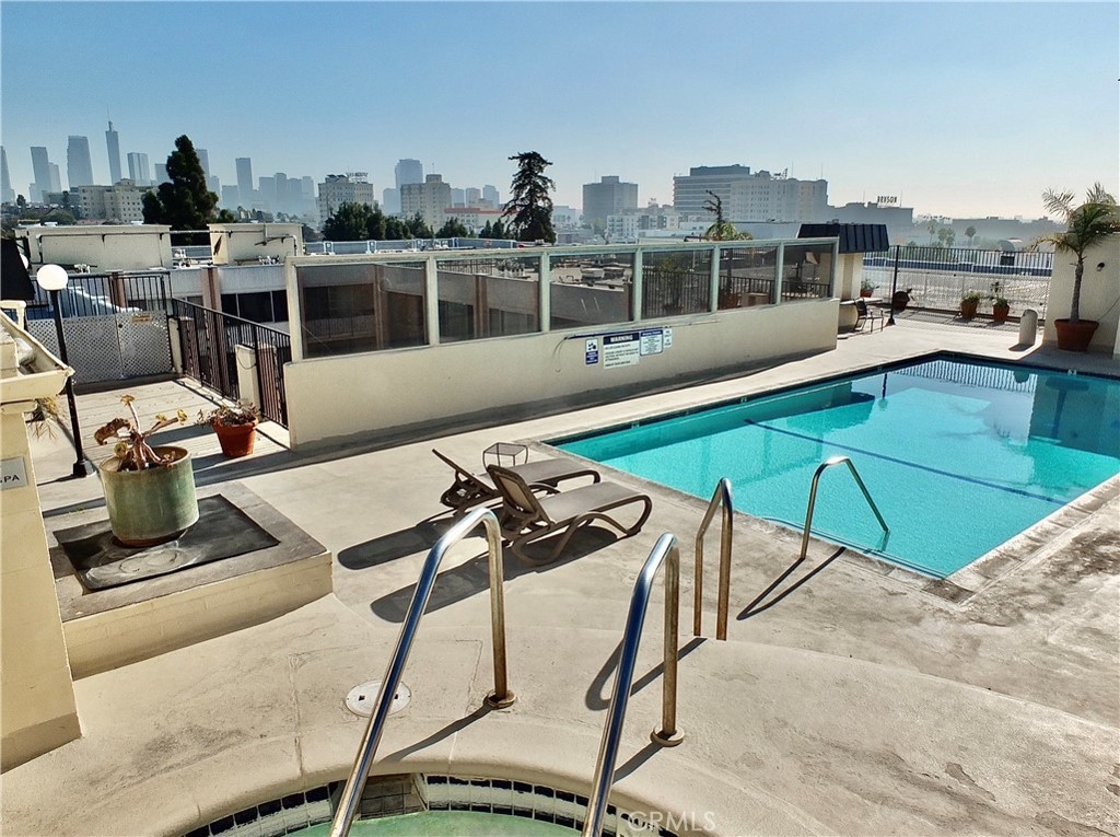 421 S La Fayette Park Plaza… #628… 2 MASTER SUITES in the La Fayette Park Towers… a stunning 2 bedroom, 2 bath treetop view unit with breathtaking views of the LA skyline with its majestic skyscrapers and captivating nighttime towering walls of light… serenely set on a wide neighborhood street on the border of K-Town, Mid-Wilshire and 2 city blocks south of Silver Lake. Approach via the glass walled foyer and elevators… then step inside and be awestruck by the open spaciousness and incredible views through the trees to Downtown LA from the expansive living room and glass doored balcony. The illuminated electric fireplace feature is great! A mirrored dining area & granite breakfast/ party bar open to the striking kitchen that looks “like new”” ••Dual Suites•• The 2 distinctive primary suites both boast treetop/ city views and compartmentalized/ private bathrooms… one with a walk-in closet, 2 sinks + a shower… another with a bath+shower and extra large closet. Storage throughout is fantastic •• 8 TOTAL closets PLUS a floor to ceiling linen center. Other amenities include 2 separate HVAC units (1 new), a community gym, saunas, gigantic pristine laundromat, 2 secured tandem parking spaces on the main level (with 3 pillars affording multiple charging station installations), plus a resort-like rooftop pool, spa and party terrace complex…… with a 360° panorama including the Hollywood Sign and the Observatory… above it all… in the La Fayette Park Plaza.
