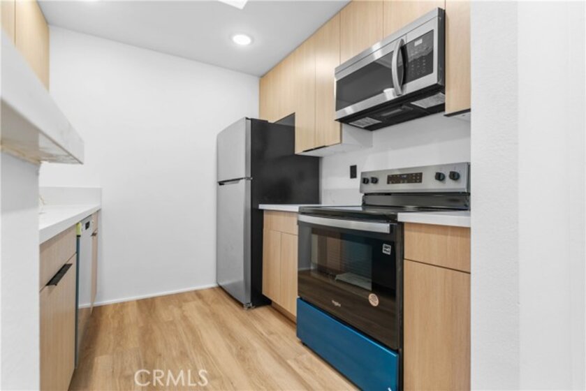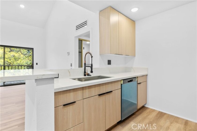 This beautifully remodeled top-floor one-bedroom condominium is nestled in the prestigious Catalina Terrace complex of Monterey Hills, minutes away to LA downtown or Pasadena easy access to 110 Freeway. Highlights include a spacious living room with a sliding glass door leading to a private balcony overlooking the tranquil lush garden and pool area, recessed lighting all over and a modern kitchen with stainless steel appliances and Quarts counters. The master bedroom boasts tall sliding mirrored closets and serene garden and pool views. Additional features include cathedral ceilings in the living room and master bedroom, a kitchen skylight, a generously sized balcony perfect for outdoor seating, central A/C and heating, secured entry, and gated underground parking with two side-by-side spaces. All remodeling including flooring & recessed lights are approved by HOA.