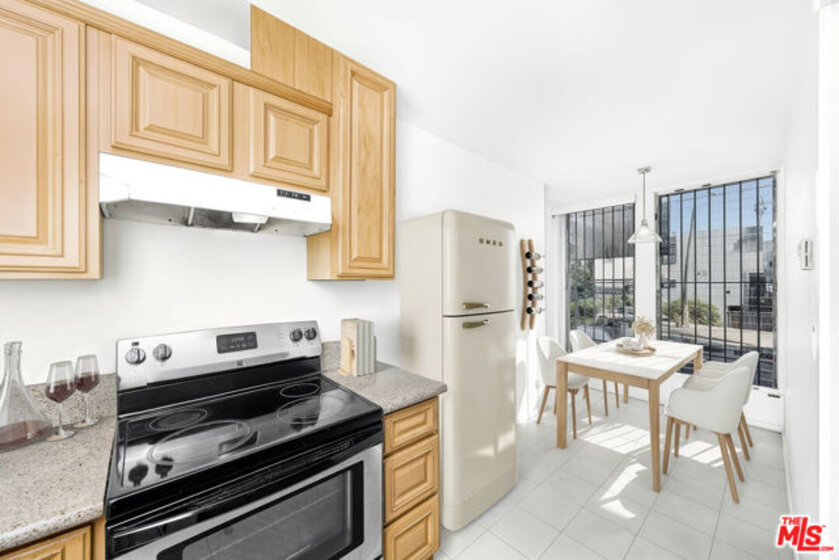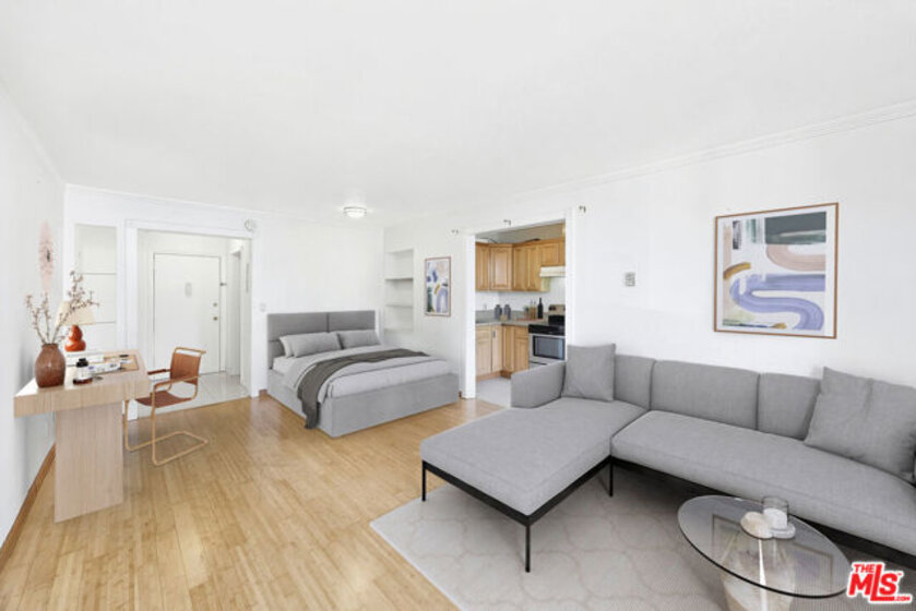 Bask in the rhythm of city life in this sunlit Koreatown studio, where modern style meets the energy of Los Angeles' most dynamic neighborhood. The updated kitchen features sleek granite countertops, rich wood cabinetry, and stainless-steel appliances that make cooking both functional and enjoyable. A cozy dining nook sits nearby, perfect for morning coffee, quiet meals, or entertaining friends. Warm wood flooring enhances the main living area, creating a welcoming and open feel, while the entryway offers plenty of space for shoes, bags, and daily essentials. A spacious closet with mirrored sliding doors provides ample storage and adds depth to the space. The bathroom features a modern vessel sink and thoughtfully designed shelving for extra organization. Step outside to your private balcony overlooking the lively street below, ideal for enjoying fresh air and LA sunshine. One dedicated parking space adds extra convenience. Situated in the heart of Koreatown, you're surrounded by some of the city's best restaurants, nightlife, and entertainment, including The Wiltern and world-famous Korean BBQ with a short distance to Downtown LA and West Hollywood.