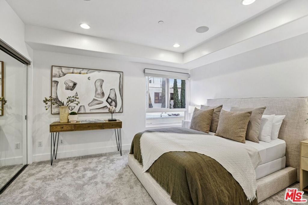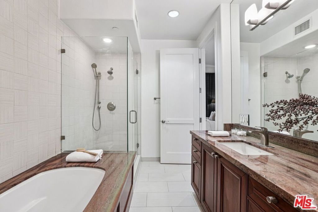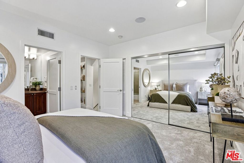 Experience refined luxury living in this exceptional Walker Zanger designed townhome, where timeless elegance meets modern sophistication. Offering 3 bedrooms and 3 bathrooms, this stunning residence showcases an expansive open floor plan accented by soaring ceilings and designer finishes throughout. At the heart of the home is a chef's eat-in kitchen, thoughtfully appointed with top-of-the-line stainless steel Viking appliances, rich granite countertops, and imported Italian cherry cabinetry, perfect for both everyday living and elegant entertaining. Merbau exotic hardwood floors add warmth and continuity across the living spaces, while two gas fireplaces create inviting focal points. Retreat to the grand primary suite, featuring impressive 11-foot ceilings, custom built-in closets, and a spa-inspired bath complete with a soaking tub and separate glass-enclosed shower. Each additional bedroom is generously sized with en-suite baths, offering comfort and privacy for guests or family. Designed for modern living, the home includes an integrated sound system, is pre-wired for plasma TV and Cat 5, and features private balconies with views, as well as private direct-access garages. Ideally located in a prime setting just steps to Beverly Hills, this sophisticated townhome offers effortless access to world-class dining, gourmet markets, shopping, and lifestyle amenities. A rare opportunity to enjoy luxury, design, and location in perfect harmony.