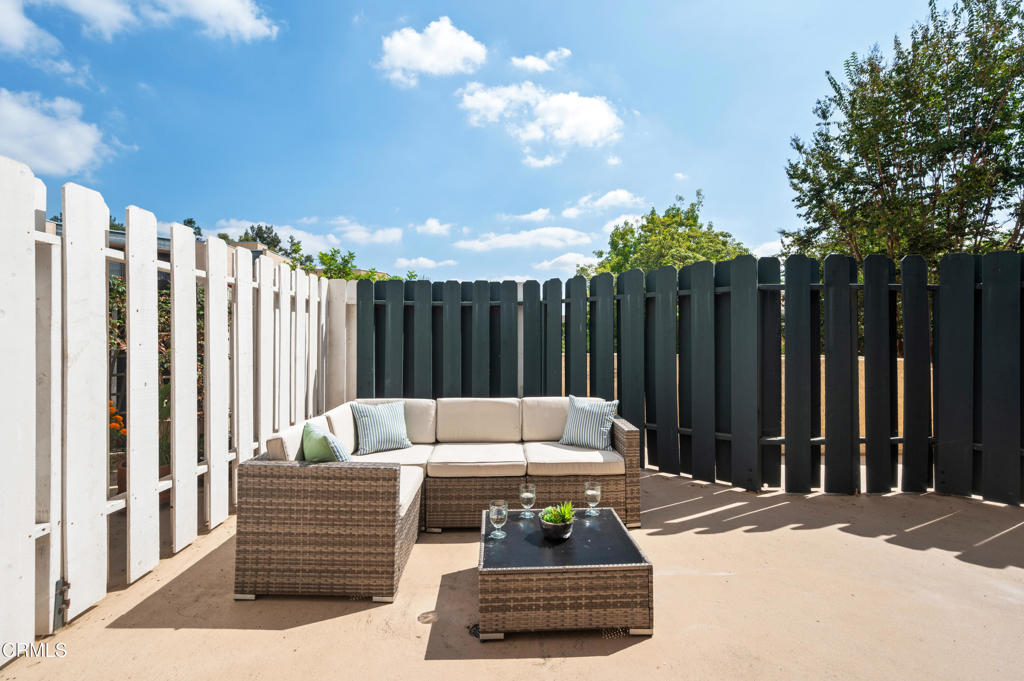 WOW!! EXPANSIVE 422 SF PRIVATE FULLY FENCED PATIO!! YOUR DOG WILL THINK HE'S IN PARADISE!! TURN-KEY PERFECTION!! EV CHARGING STATIONS!! Breezy treetop views and effortless indoor-outdoor flow set the tone for this delightfully upgraded Eaton Crest end unit. From the moment you cross the threshold, a sense of peace and serenity takes over--every detail feels designed for relaxed, sophisticated living.The open, flowing layout leads from a gracious formal entry with walk-in closet to a bright and airy living room, and out to an enormous sun-splashed patio--your own private outdoor sanctuary. The dining area connects seamlessly to a cheerful open kitchen with tile countertops, a breakfast bar, and stainless steel appliances, ideal for entertaining or everyday ease.The spacious primary bedroom features a wall of mirrored wardrobes, while the spa-inspired bath exudes tranquility with thoughtful upgrades throughout. The second bedroom--with dramatic floor-to-ceiling windows and direct access to the private patio--functions beautifully as a den, guest room, or creative workspace. Recent enhancements include new double-pane windows and patio doors plus luxury vinyl plank flooring throughout. A private in-unit laundry room adds convenience and comfort.Resort-style HOA amenities include a shimmering pool, spa, sundeck, recreation room, and secure bike storage. Perfectly positioned near the vibrant restaurants and nightlife of York and Figueroa in Highland Park, DTLA, Old Town Pasadena, USC Health Sciences Campus, and the Gold Line.Eaton Crest represents the Gold Standard of Monterey Hills living--serene, stylish, and close to everything. Come experience this hidden gem before it's gone!