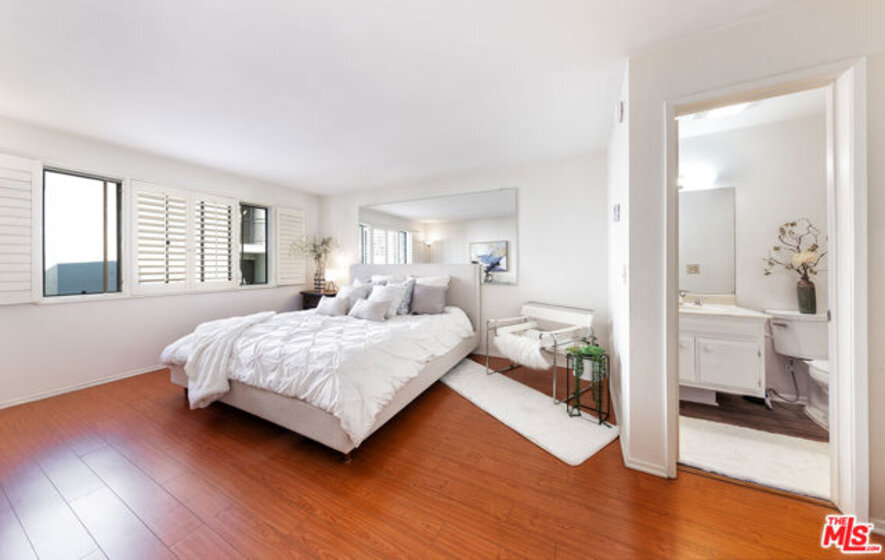 Beautiful, peaceful and serene 2 bedroom (2 Principals) + 2 bathrooms + 1 balcony + 2 parking spaces (not tandem)+ Open concept + Tree Top view+ Extra Storage + Close to Ballona Creek Bike Path ! There are several special features in this condo: 1) 2 principal bedrooms and one of them has a separate entry to the bedroom! Great for roommate situation or renting one of the rooms. You can keep one bedroom and a living area and totally isolate the other bedroom/bathroom. For a 1 bedroom buyers consider this one. Buy a 2 bedroom and use one side and have the second bedroom pays for itself. Once you need to expand your living space, you have 2 bedrooms. 2) This unit is facing the courtyard and it is very peaceful and serene. You don't feel you are in the middle of the city 3) Prime Location: bike ride to the beach using the Ballona Creek Bike Path, adjacent to Playa Vista, Marina del Rey and Culver City. Literally easy access to Tech hub, shopping, restaurants, LAX and more. Open floor concept, very spacious, light, bright and airy living area w/ breakfast bar. Large windows in the living room brings tons of natural light with the view of the courtyard, Tree tops and the pool. 4) This unit is conveniently located close to the community laundry and the elevator. Outdoor balcony flows from the living area and it is a peaceful spot to have a glass of wine or cup of tea/coffee. Each side of the living area you have 2 great size principal bedrooms. Each one with a bathroom and walk in closet. Custom Plantation Shutters in all windows/sliding doors. Great size kitchen with lots of storage. Extra Storage by the parking space. This condo is well designed with no wasted space. Amenities: Pool, exercise room, meeting room, sauna, hot tub, peaceful walk ways with Koi Ponds. Centrally located in the west side, close to Silicon Beach areas, Playa Vista, Marina del Rey, LAX, Santa Monica, Beaches, Culver City, shopping mall, all kinds of retails, restaurants, and Fwys. HOA includes many utilities: water, sewer and trash!