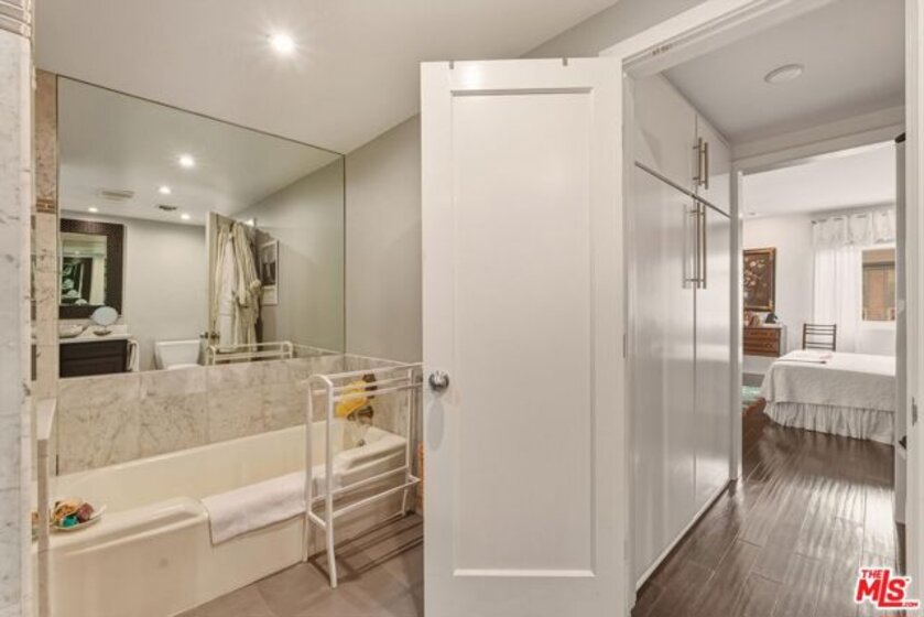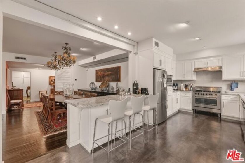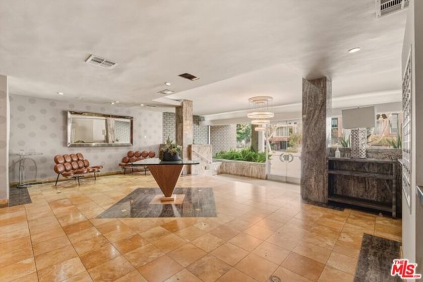 Sophisticated Park Avenue style condominium in the heart of Hancock Park, located in the Majorca building. This beautifully upgraded, light-filled residence features wood floors, a formal entry hall, an expansive living room, and a large formal dining area ideal for entertaining. The kitchen includes stainless steel appliances, granite countertops, a breakfast bar, abundant storage, and space for a breakfast table, with an adjacent inside laundry area. Both the living room and kitchen open directly to a large, private terrace, creating an exceptional indoor outdoor flow. The spacious primary suite is highlighted by a bathroom with double sinks, a separate soaking tub, and a walk-in shower. Additional features includes, a gracious and updated lobby, extra storage in the garage area, and a large grassy communal area at the rear of the building. Ideally located just moments from Larchmont Village's beloved shops, cafes, and dining.