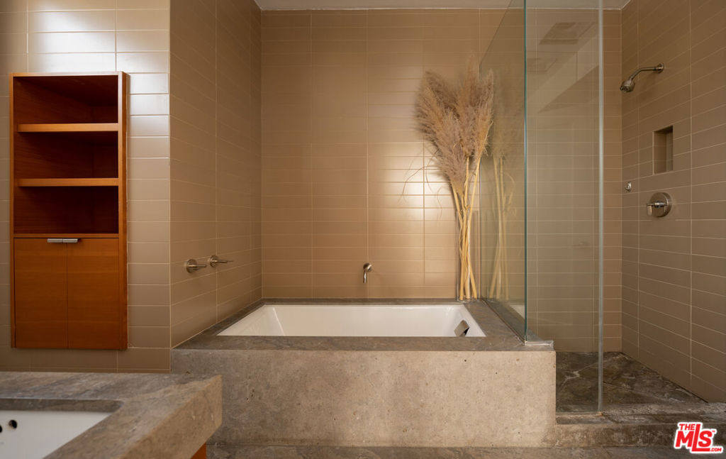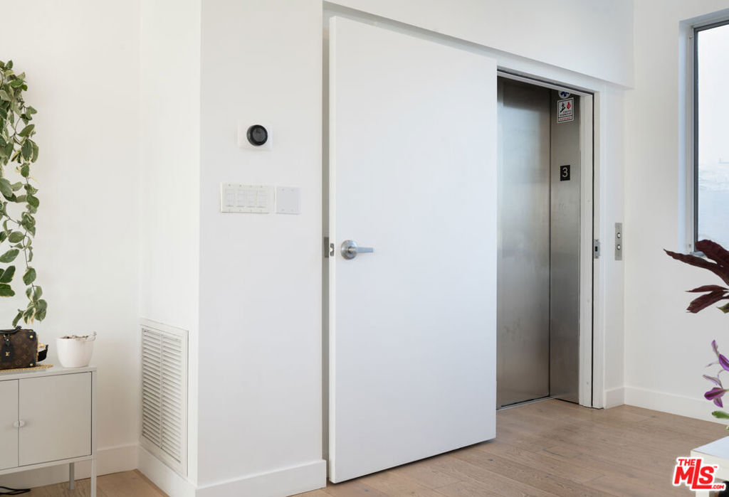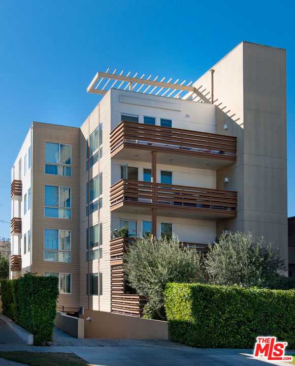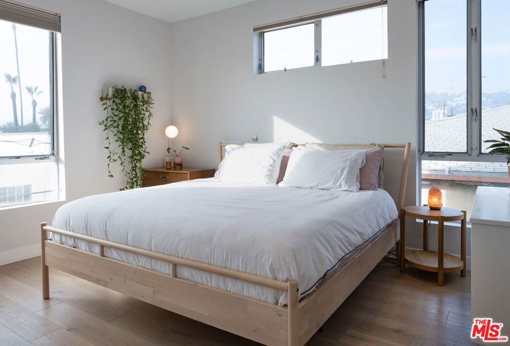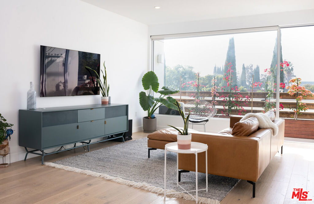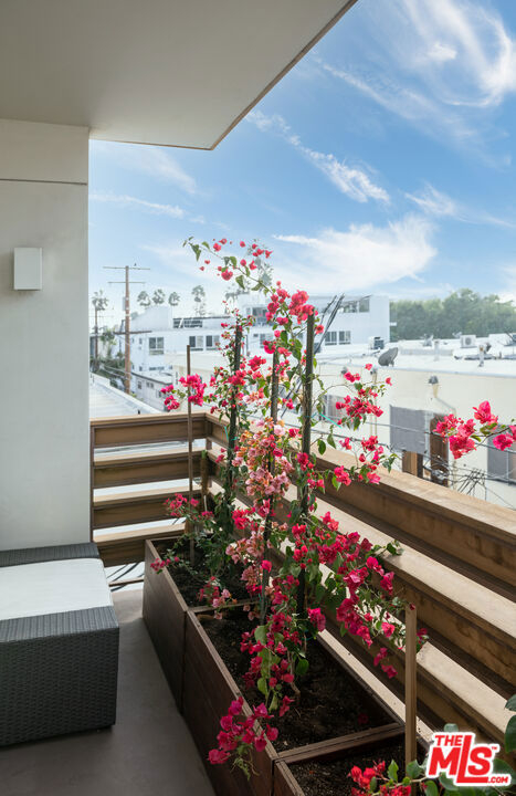 Perched high up above West Hollywood with views of downtown Los Angeles, the Santa Monica Mountains, and the Hollywood Sign, this 2 bed, 2 bath condo is just a short distance to Melrose Ave shops and restaurants. Direct elevator access leads you to an open floor plan, single floor condo with an abundance of natural light saturation. There are only 4 single floor units to the building ensuring total privacy. The chef's kitchen includes a stainless steel Viking 6 burner range, stone counter tops, and custom Douglas fir cabinets. Imported bamboo floors, fixtures in polished nickel, and stylish bathrooms with honed stone slab floors fill this home with an ambient elegance. The 3 outdoor space patios and balconies provide you a panoramic view of West Hollywood and downtown. An incredible opportunity not to be missed!