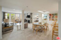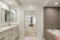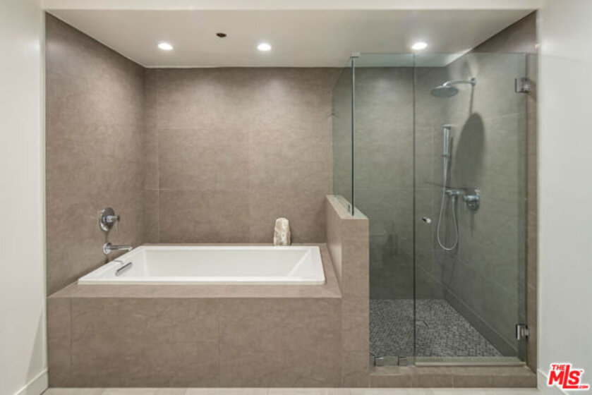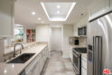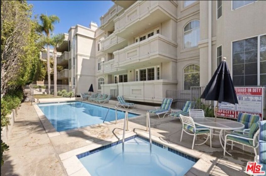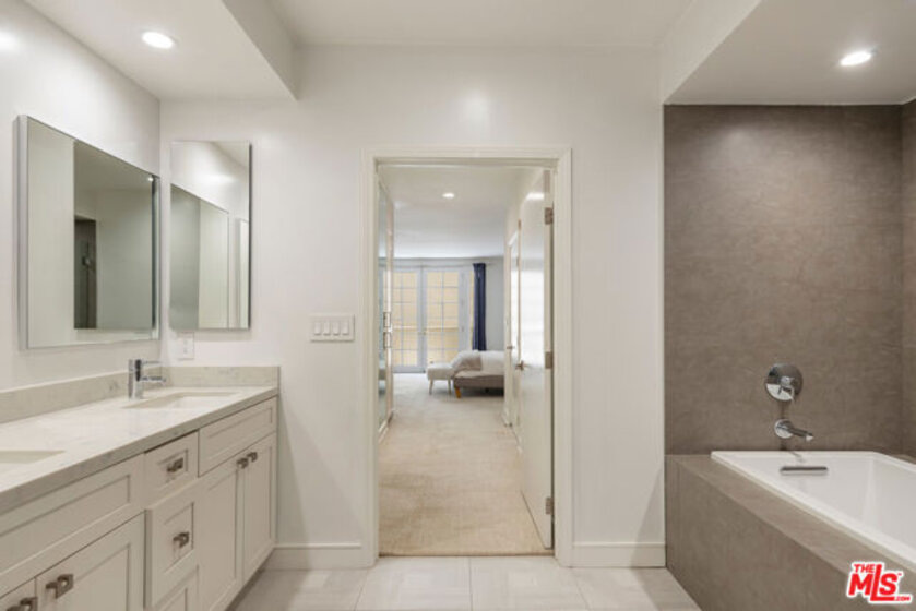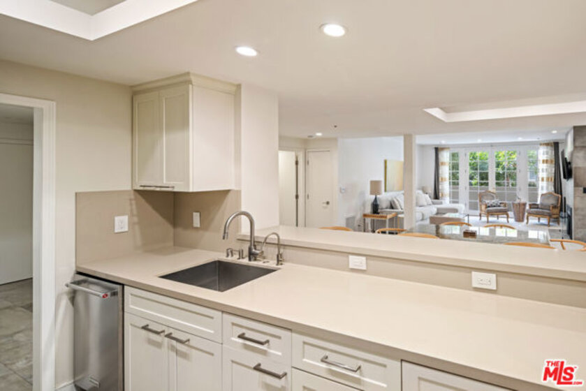 This stunning, remodeled condo blends modern elegance with exceptional functionality. Featuring a chic aesthetic and an ideal open-concept floor plan, the home offers two private bedroom suites positioned on opposite sides of the expansive living, dining, and kitchen areas perfect for comfort and privacy. A welcoming entryway leads to a gourmet kitchen with stone counters and flooring, stainless steel appliances, a breakfast bar, custom cabinetry, and a convenient washer/dryer closet. The bright and airy living and dining area features a fireplace and French doors that open to a private patio, creating a seamless indoor-outdoor flow. The elegant primary suite includes a fireplace, a spacious walk-in closet, french doors to the patio, and a spa-inspired bathroom with double vanities, a custom soaking tub, and a separate shower. The guest suite, located off the entry, features double closets and a modern bath. A beautifully appointed powder room completes the layout. Crafted with high-quality materials and thoughtful design, this home showcases lush custom carpeting and stone flooring, bespoke cabinetry, lighting, and premium tile and stone finishes, including central HVAC. Enjoy the benefits of an amenity-rich complex offering side-by-side parking, storage, guest parking, a fitness center, pool, spa, recreation room, including earthquake insurance