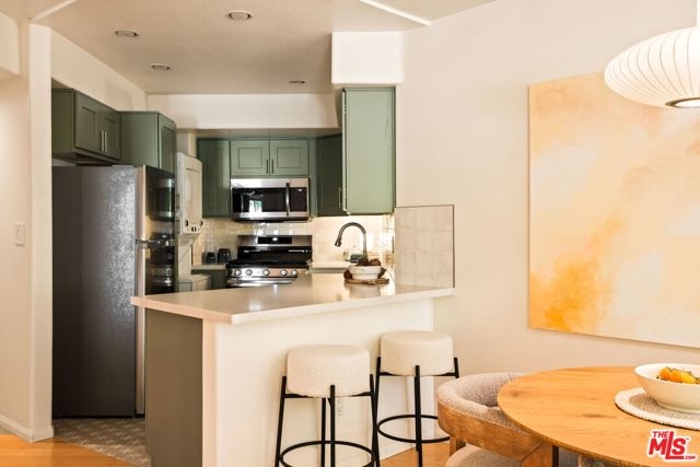This 2-bedroom, 2-bath condo spans 1,003 sq. ft. of thoughtfully designed space, blending clean lines with warm, contemporary finishes. Natural light fills the open-concept floor plan, highlighting maple flooring and a breakfast bar, while sliding doors extend the living area onto the private patio balcony creating a seamless indoor-outdoor flow. The kitchen has been completely reimagined with integrated appliances and minimalist cabinetry, a refined mix of form and function that elevates everyday living. Head outside to your private patio, the perfect setting for morning coffee, intimate dinners, or your own garden hideaway. The gated community offers a pool, spa, and lush landscaped grounds, providing a rare balance of connection and calm. Located just moments from the vibrant energy of York Boulevard and Figueroa, this home captures the essence of Eastside living stylish, convenient, and distinctly Highland Park.