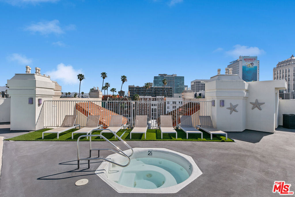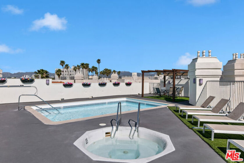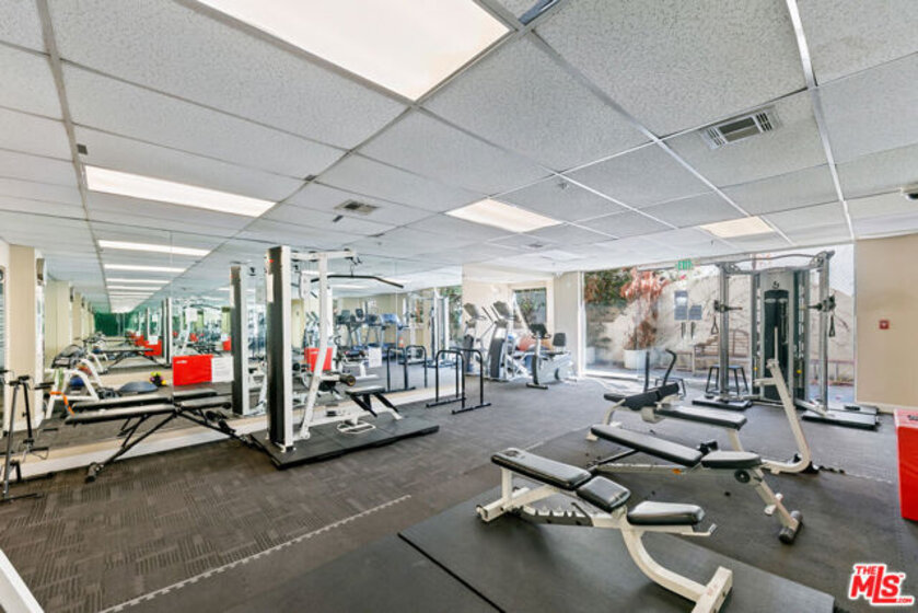 Lowest Priced 2-bedroom in Gramercy Place and also one of the larger layouts in the building. West-Facing exposure brings in gorgeous afternoon sunlight, filling the living spaces with warm natural light. The spacious living room features a fireplace and opens to a private west-facing balcony through a large sliding glass door, with views of the hills to the north and city lights to the south. Recessed lighting throughout enhances the bright, open feel of the home. Freshly painted with new carpeting installed in February 2026, the unit is beautifully presented and ready for its next owner. The split floor plan provides excellent separation between the bedrooms, each with its own full bathroom ideal for guests, roommates, or a home office while maintaining privacy. The primary suite includes a walk-in closet, and an additional walk-in closet off the entry offers valuable extra storage. Built-in cabinetry outside the primary suite and second bedroom provides even more storage rarely found in comparable units. The dining area features a striking chandelier and opens to the kitchen, which includes stainless steel appliances, granite countertops, a gas range, generous counter space, a breakfast bar, and ample cabinetry. Gramercy Place is a well-maintained building offering a full set of amenities. Residents are greeted by a generous lobby with seating areas and access to the mail room and elevators. Each floor has its own laundry room, and the building is staffed with a 24/7 security guard. The fully outfitted fitness center includes a wide range of equipment, two saunas, and a shower. The rooftop amenities are a standout feature, with a pool, spa, expansive sundeck with lounge chairs, covered seating area, outdoor dining table, bathroom, and sweeping city views.Two tandem parking spaces are included in the secured garage, along with guest parking for visitors.Located just north of Wilshire Boulevard in Hancock Park near the Wilshire/Western station, with convenient access to H Mart, restaurants, cafes, and everyday services. Close to Larchmont Village, Downtown Los Angeles, and the Westside. Please check out the Matterport Tour!