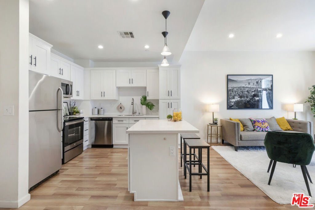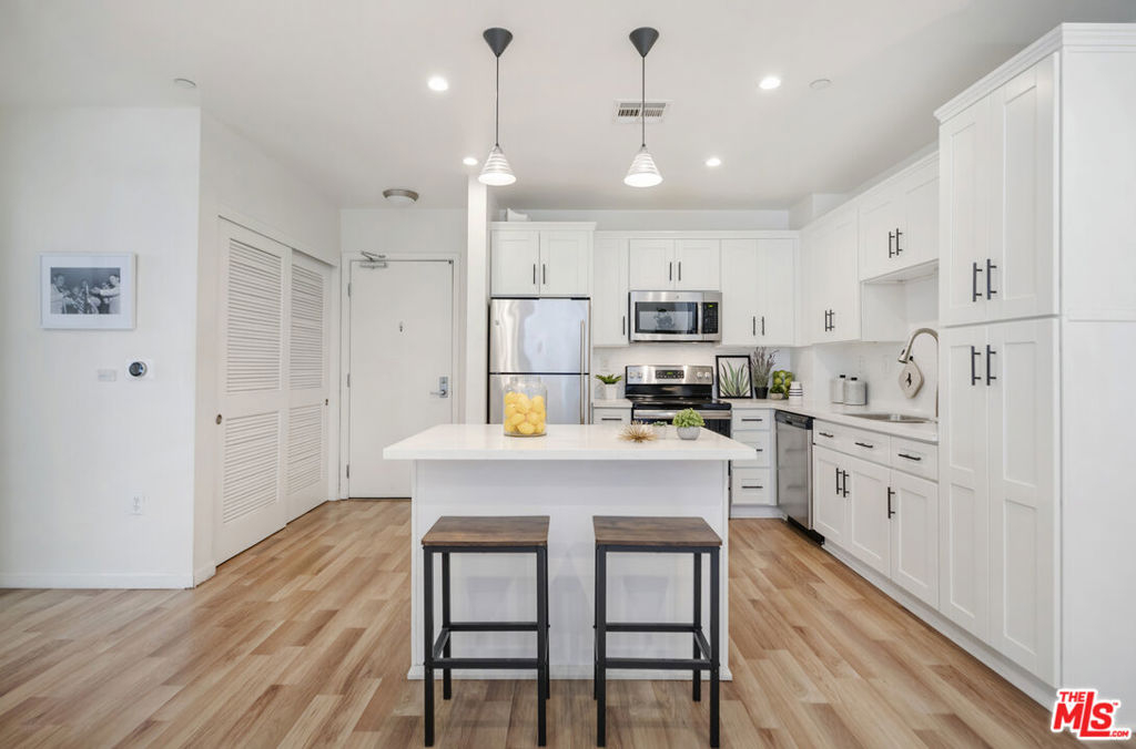 Welcome to Library Court, a sophisticated urban oasis in Downtown LA's Financial District. This exquisite 1-bedroom condo offers modern design and functional living, providing an unparalleled lifestyle in the city. Key features are the bright kitchen with updated shaker cabinets, a sleek white subway tile backsplash, and a stunning island perfect for entertaining. There is a spacious bathroom, generously sized bathroom with a matching vanity and contemporary tile flooring. Natural & Recessed lighting throughout the unit. Entryway includes a dedicated laundry space with a stackable washer and dryer. 1 assigned parking space included. The building is nearby an state of the art New Fitness Center. For work there are well-equipped meeting rooms for business or gatherings. Serene zen garden for relaxation. Round-the-clock front desk service and security. Prime location in the heart of convenience and luxury, with a short walk to The Bloc, FIGat7th, Whole Foods, Bottega Louie, Sugar Fish, and numerous other dining and shopping destinations. Embrace the vibrant lifestyle at Library Court. This modern 1-bedroom condo is a rare find in one of DTLA's most sought-after buildings. Don't miss the opportunity to make it your own!