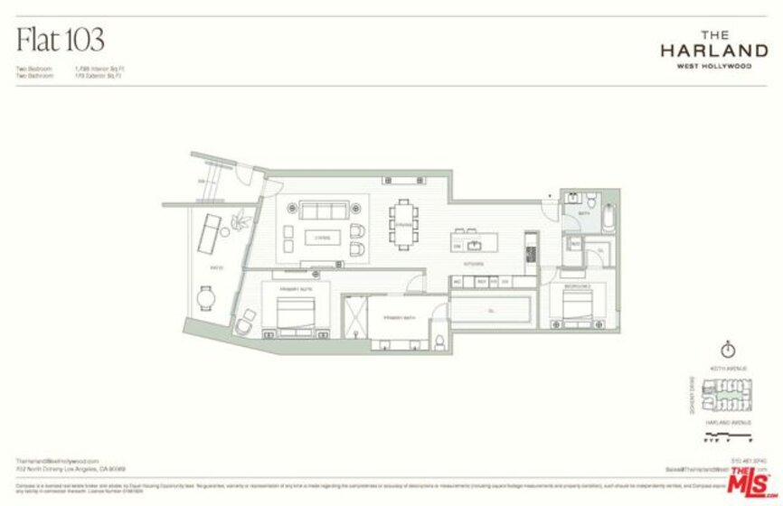 One of only 37 Case Studyinspired, move-in ready residences, Flat 103 at The Harland exemplifies the best of California modern design in a single-level layout. Designed by OFFICEUNTITLED with interiors by Marmol Radziner, this two-bedroom, two-bath residence features a private outdoor terrace and west-facing exposure that fills the home with vibrant afternoon sun and warm evening light. Floor-to-ceiling windows and open-concept living spaces connect indoors to out, while finishes reflect a quiet sophistication and a warm, modern sensibility. Located where West Hollywood meets Beverly Hills, The Harland pairs the privacy of a personal residence with access to amenities including a screening room, residents' lounge, fitness studio, and two-lane bowling alleyjust moments from the city's top dining, shopping, and cultural destinations.