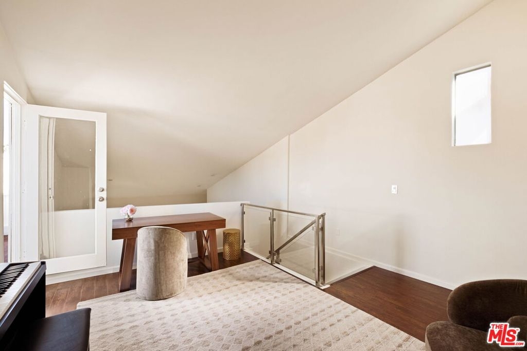Welcome to your Brentwood era! Set in the heart of Brentwood, this condo is a light-filled, top-floor corner unit that blends effortless style with everyday comfort. This 2-bedroom, 1-bathroom home offers 1,143 square feet of airy living space, soaring ceilings, and only one shared wall giving you privacy and calm in one of the Westside's most bustling neighborhoods. Step inside and enjoy the open-concept floor plan and welcoming living area with a cozy fireplace. The contemporary kitchen makes both daily living and entertaining feel easy, and the bathroom has been tastefully updated with stylish finishes. The primary bedroom is large and bright, with access to the front balcony, and features an enviable walk-in closet built out for all your storage needs. The second bedroom features a loft-style design that opens directly to your private rooftop deck; think sunset dinners, weekend hangs, or a quiet morning coffee above it all. Beyond your front door, enjoy the large community pool and BBQ area. Plus, two assigned parking spaces, garage access, and guest parking make city living seamless. All of this, just moments from Brentwood's best dining, coffee spots, shopping, and parks (yes, even a dog park!). With an 87 Walk Score, you can leave the car at home without missing a thing. Bright, airy, and designed for your lifestyle this is the one.