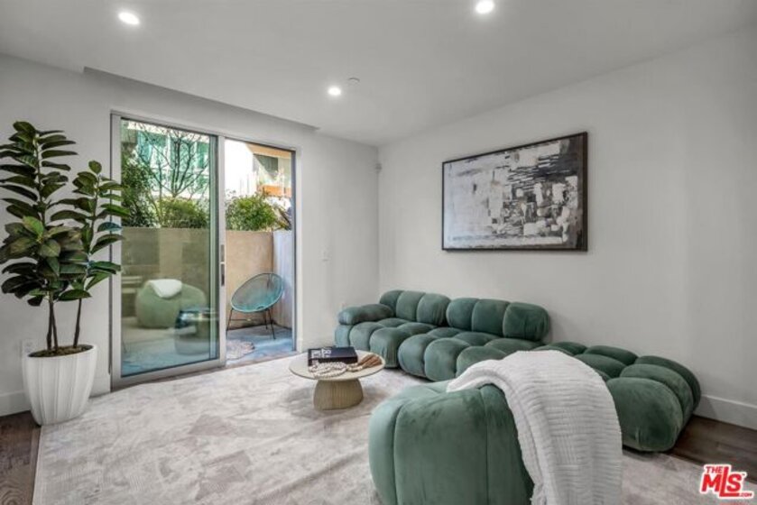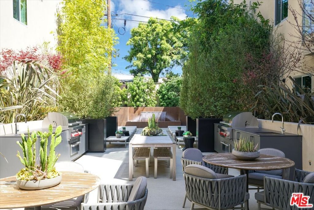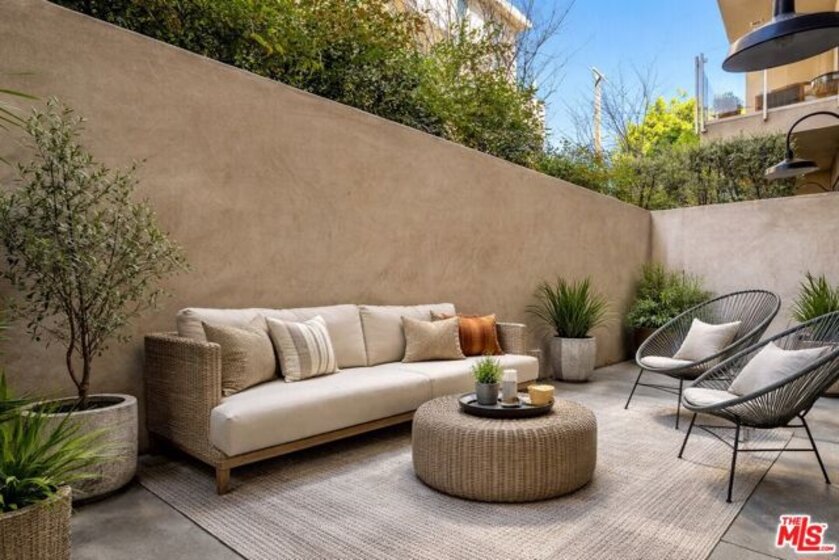 Sophisticated and effortlessly stylish, this 1-bedroom, 1-bath single-level residence showcases a rare, oversized private terrace perfectly designed for seamless indoor-outdoor living in one of the most coveted pockets of the Melrose District. Privately positioned with serene courtyard views and north-facing exposure, the home is filled with soft, natural light throughout the day.The spacious terrace extends directly from both the living area and the bedroom through two large sliding glass doors, creating a true indoor-outdoor lifestyle ideal for morning coffee, evening entertaining, or a relaxing retreat for your furry companion. Inside, the sleek, designer kitchen features Snaidero Italian cabinetry, premium Sub-Zero and Wolf appliances, and refined, eco-conscious finishes including Caesarstone countertops, Gessi fixtures, and a luxurious oversized shower. The well-appointed bedroom offers a generous walk-in closet, while a dedicated laundry area with a full-size stackable washer and dryer adds everyday convenience.Set on a picturesque, tree-lined street just moments from Melrose's top shopping, dining, and nightlife, The Ainsley offers the perfect blend of walkability and full-service living. Residents enjoy a curated collection of amenities, including concierge services, a stylish California lounge, and a fully equipped fitness center with dedicated yoga and training spaces.Resort-style amenities elevate the experience, with a state-of-the-art gym featuring Peloton bikes and free weights, private Pilates and massage studios, and an elegant resident lounge with bar seating and a media area for entertaining. Outdoors, a tranquil, Zen-inspired courtyard features twin Wolf BBQs and a communal dining table perfect for al fresco dining and social gatherings, with additional space for pets to enjoy the open-air setting.Additional highlights include secure entry and elevator access, as well as two tandem parking spaces in a gated garage and Ev charger, offering both convenience and peace of mind in this premier, design-forward community.