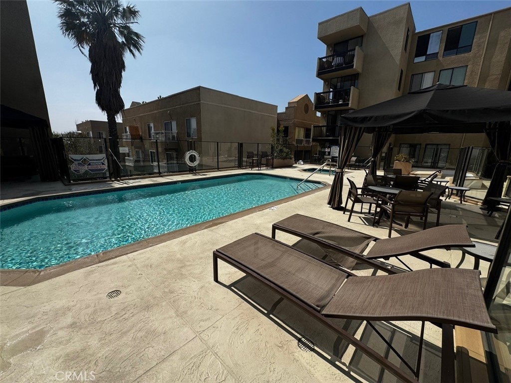 Welcome to this spacious 2 bedroom 2 bathroom first floor condominium with in unit washer and dryer. The beautiful designed condo offers the ideal layout for roommates or hosting. Each ensuite with its own walk-in closet. This spacious residence offers the perfect blend of comfort, convenience and lifestyle. Cozy up to the gas fireplace in the large open living area. Don't miss the large patio perfect for the warm California evenings. Enjoy the Resort style living with access to a sparkling pool and relaxing entertainment areas. The building offers a well appointed gym. Controlled access entry. The secure parking garage includes EV Charging Station with two Tandem assigned spaces. Situated in the heart of Hollywood, you are just a short walk to iconic attractions, shopping, and the trails of Runyon Canyon, right at your doorstep!