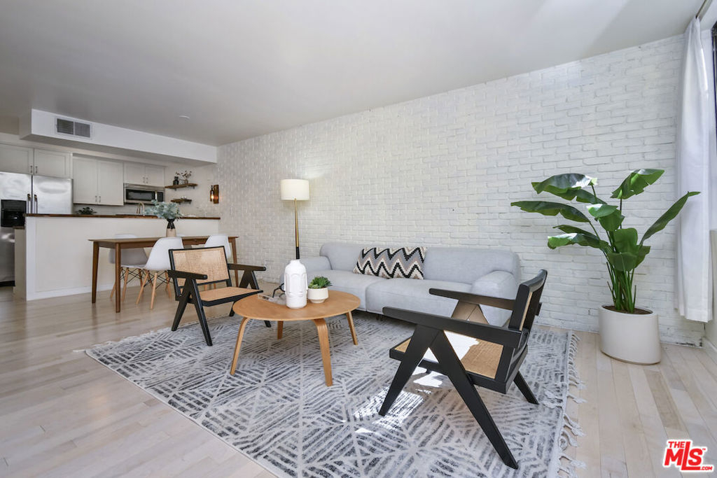 Welcome to easy West Hollywood living in one of the area's most desirable locations. This move-in-ready 1-bedroom, 1-bath condo offers 664 square feet of comfortable, efficient living space in a secure building just moments from Melrose Place, popular dining, great coffee spots, shopping, and nightlife. With a strong walkability score, you can leave the car behind and enjoy the best of the neighborhood right outside your door.Inside, the layout feels open and functional, with a private balcony accessible from both the living room and bedrooman ideal spot for morning coffee or winding down at the end of the day. The unit also includes deeded gated parking, adding convenience and peace of mind. Residents enjoy access to an expansive rooftop deck with panoramic city views, a BBQ area, spa, sauna, fitness center, billiards room, guest parking, EV charging, and laundry on every floor. HOA dues include water, gas, trash, and earthquake insurance, making ownership even more convenient. Stylish, secure, and close to everything, this condo offers a great opportunity to enjoy the West Hollywood lifestyle.