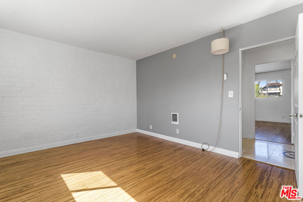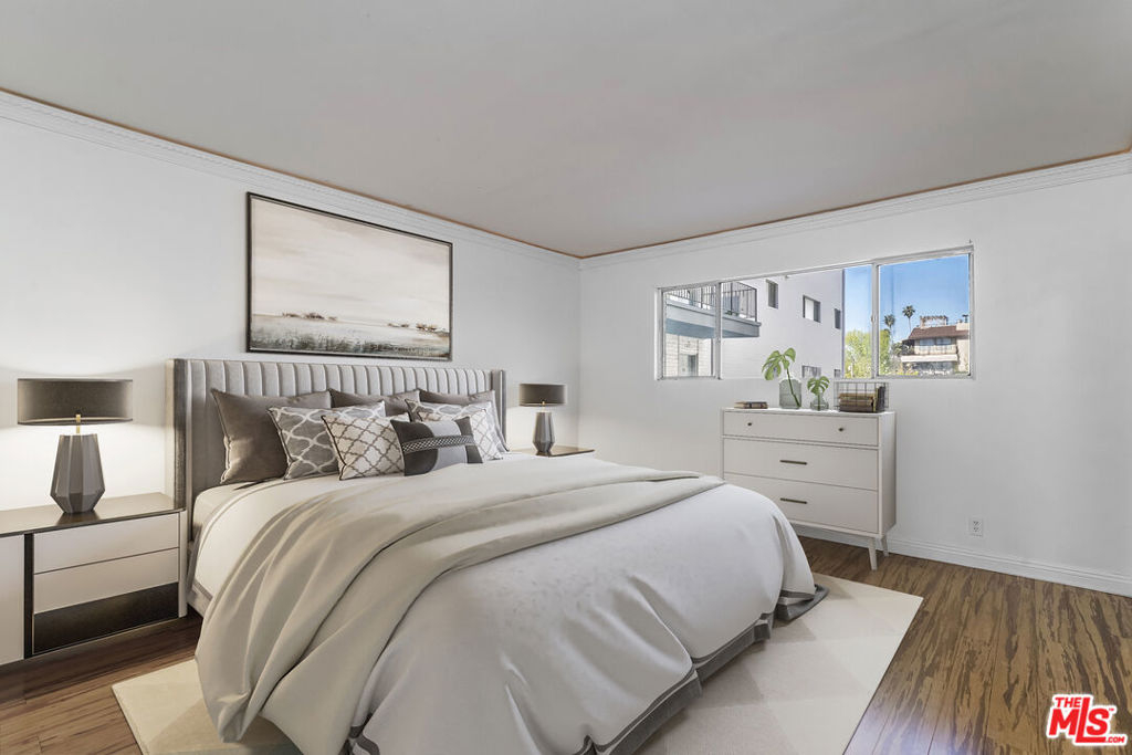 This is a Hip 1960's Modern building, the unit is 2 bedrooms and 2 baths, almost 1,200 sq feet. The kitchen and appliances are brand new. There are laundry hook ups in a big laundry closet, and teak wood floors in the spacious living room with a large patio, great for pets. There are views from the patio and most windows facing East towards L.A. and quite far South and the to the Hollywood Hills to the North. The bedrooms are separate and great for roommates or a home office. The 2 parking spaces are side by side. This is at the base of "Runyan Canyon" and West Hollywood adjacent. There is a peaceful pool area, the common areas have been recently renovated. Most pets are ok. This is also near the "Hollywood walk of Fame", minutes from Sunset Blvd., Ralphs Market and endless cafes.