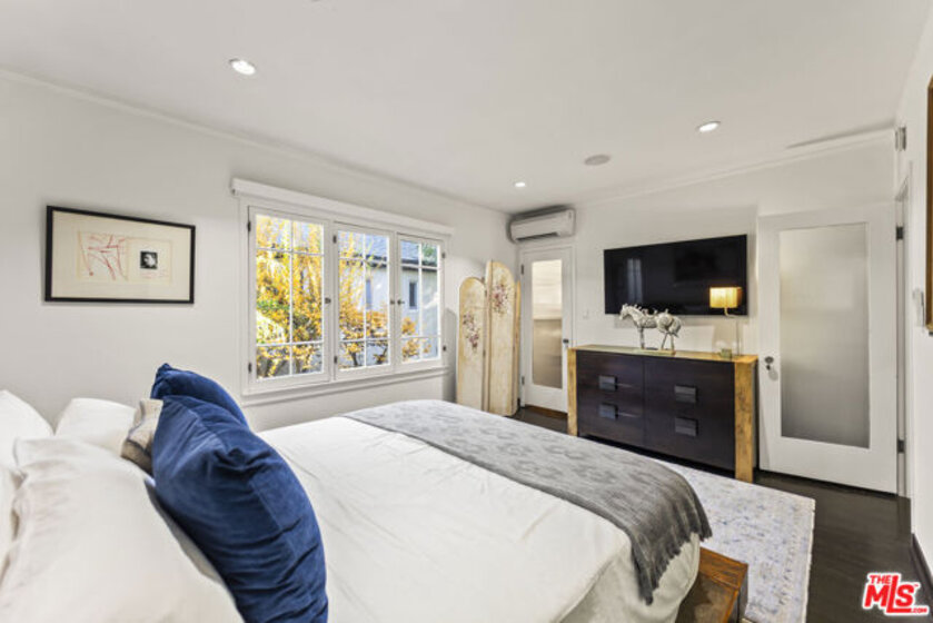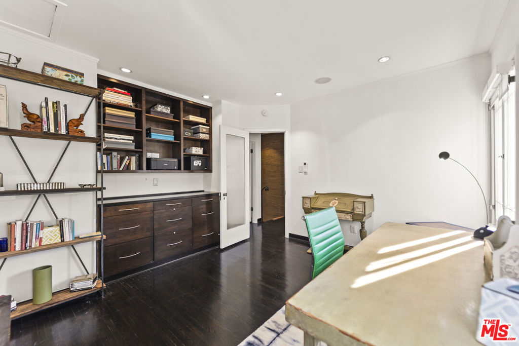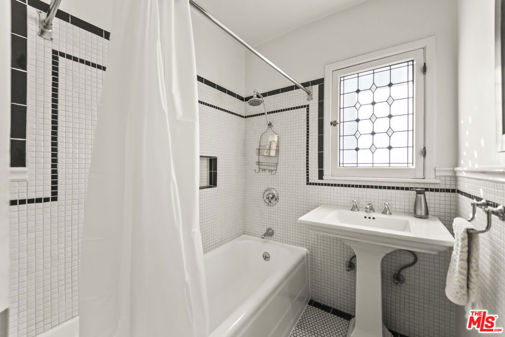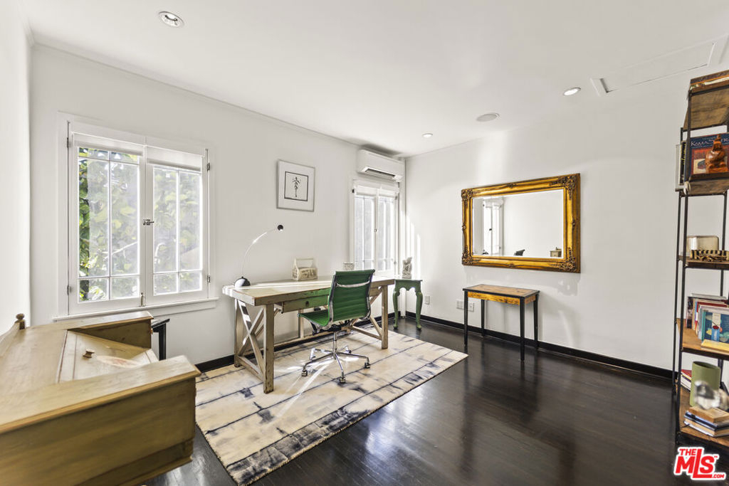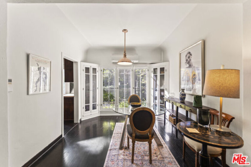 Tucked inside the storybook Norton Garden Villas, this enchanting 1925 townhome offers a rare blend of historic character, lush garden surroundings, and modern upgrades all in one of West Hollywood's most coveted walkable pockets. Through a vine-covered gated entrance, a serene brick pathway leads you to this private two-story residence. The home opens to a sun-filled living room framed by multiple French-pane doors and windows overlooking the beautifully landscaped courtyard. High coved ceilings, ebony hardwood floors and recessed lighting create an elegant yet warm ambiance.A separate formal dining area flows into the renovated European-inspired kitchen, appointed with rich wood cabinetry, Silestone countertops, stainless-steel appliances, a designer metallic tile backsplash, and direct access to the garden pathway. Upstairs, two generously sized bedrooms capture treetop views and abundant natural light. The classic black-and-white bathroom has been thoughtfully updated while preserving its period charm, complete with mosaic tile floors, a pedestal sink, and a beautiful leaded-glass window. Above the upper level is an unusually spacious attic/ceiling volume offering significant storage and potential several neighboring units have remodeled or finished this area (buyer to verify feasibility). Additional highlights include community laundry plus an older in-unit hookup that may allow installation of a stacked washer/dryer (buyer to verify). The quiet central courtyard, gated pathways, and mature landscaping create a peaceful oasis rarely found in West Hollywood.Located just one block from Whole Foods, Post Office, Starbucks, and the Fairfax/Santa Monica corridor, and moments from the Sunset Strip's top restaurants, boutiques, and nightlife, this home offers an unmatched lifestyle of charm, privacy, and walkability. A rare offering homes in this iconic garden complex are seldom available.