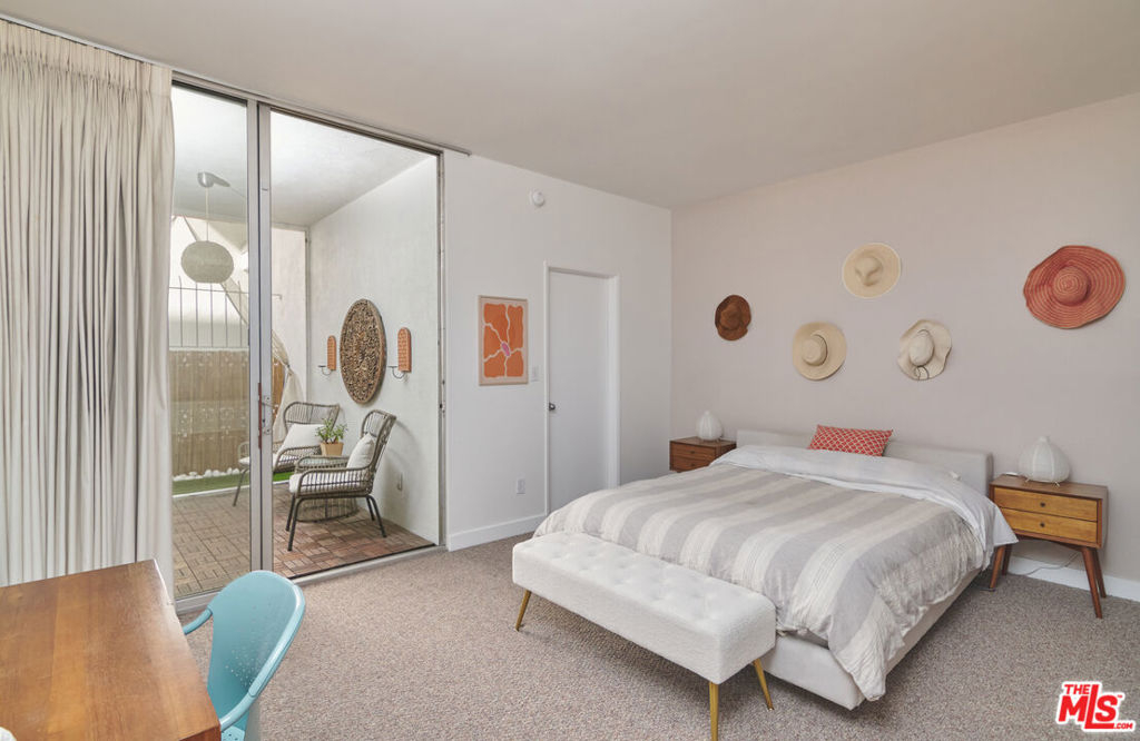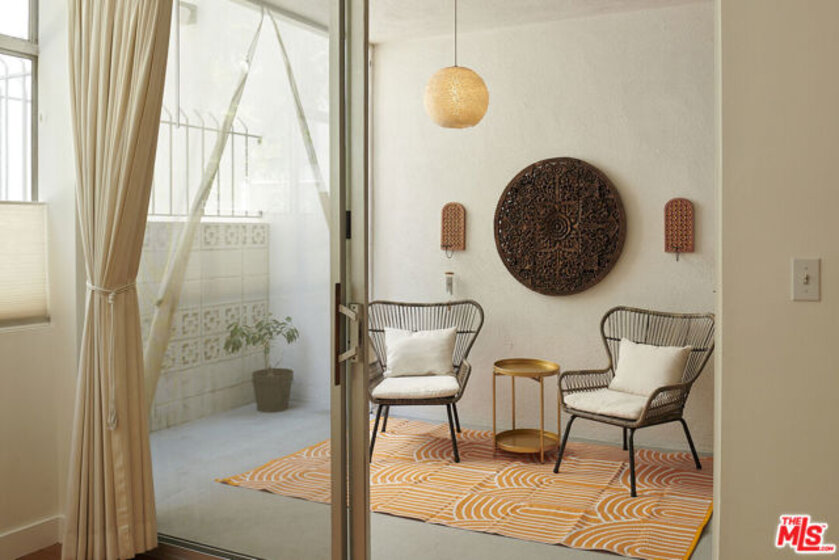 Stylish mid-century modern condo located just north of Sunset Boulevard, at the foot of the Hollywood Hills, a block west of the Sunset Square Historic neighborhood. This spacious unit features high ceilings, and an open-concept layout, perfect for entertaining guests or simply relaxing in the large open space. The living room boasts a wall of windows that flood the home with natural light and offer serene views of the courtyard trees. Step out onto your private patio - accessible from both the living room and bedroom - for a morning coffee or evening wind-down. The generously sized bedroom includes a full wall of closets plus a separate walk-in closet, giving you abundant storage options. Additional community features include a pool, laundry area, gated underground parking and secure entry for added peace of mind. Located in the heart of it all, you're just minutes from Trader Joe's, Whole Foods, Bristol Farms, Starbucks, Crunch Fitness, The Griddle, Laugh Factory, Pace, Rite Aid, West Hollywood's best dining, and so much more. Don't miss this opportunity to live in style and comfort in a prime location.