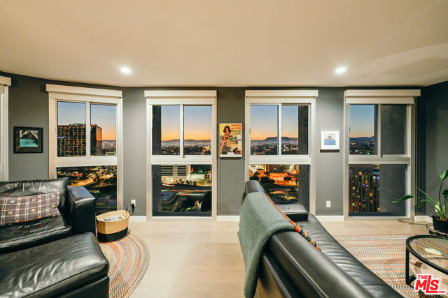 Experience this stylishly reimagined corner unit at the renowned Bunker Hill Tower, Downtown LA's premier full-service high-rise. From sweeping city lights to the Pacific Ocean, enjoy dramatic panoramic vistas that also showcase landmarks such as the Hollywood Sign and Griffith Observatory. Inside, newly installed wood flooring pairs beautifully with floor-to-ceiling double-paned windows, filling the home with natural light. Two generous bedrooms and two spa-like bathrooms reflect meticulous attention to detail. The open-concept kitchen blends sleek design with everyday functionality. Perfectly situated in the cultural hub of DTLA, you'll be just steps from the Disney Concert Hall, Music Center, Broad Museum, MOCA, and the Frank Gehry-designed Grand LA. The recently opened Grand Avenue Arts/Bunker Hill Metro Station places the entire city within easy reach. Residents of Bunker Hill Tower enjoy unmatched amenities: 24/7 concierge and security, gated guest parking, an Olympic-sized heated pool, two spas, tennis and pickleball courts, BBQ and picnic areas, playground, and two fully outfitted fitness centers. On-site conveniences include a market, beauty salon, and chiropractic office. HOA fees simplify city living by covering all essential utilities (electricity, gas, water, internet, trash, and secure parking) making this the ultimate lock-and-leave urban retreat.