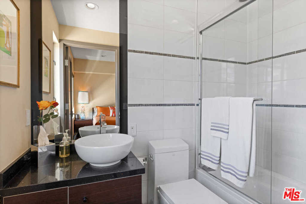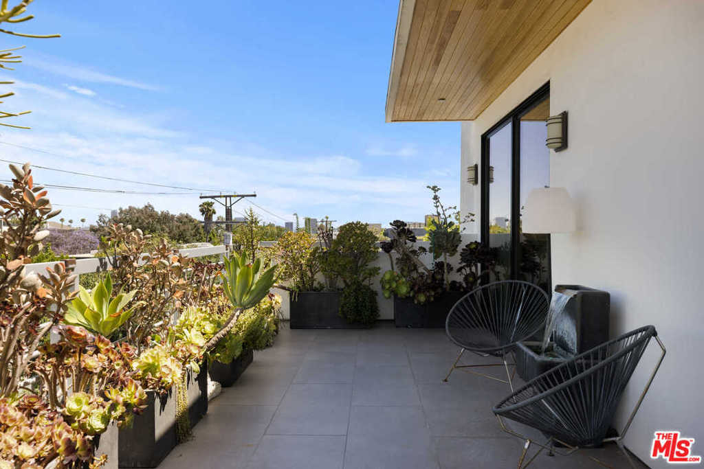 Contemporary townhouse style luxury condo in prime West Hollywood location close to Melrose Place. This meticulous 6-unit building offers privacy, security, and close proximity to just about everything. Top floor unit with two private decks maximizing indoor-outdoor flow providing gorgeous tree-top and city views. Enter on the lower level to a light-filled spacious great room, featuring a cooks kitchen with accompanying living and dining areas, powder room, laundry room, and guest bedroom with an ensuite bathroom. Ascend to the upper level to find a spacious owner suite with a fireplace and a spa-like bathroom with a stand-alone tub and shower, an additional bedroom and bathroom completes the second floor. The unit includes gated access and a private garage with 2 tandem parking spaces. A must-see!