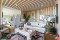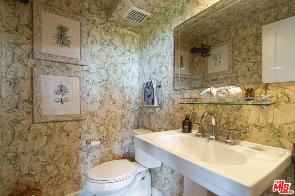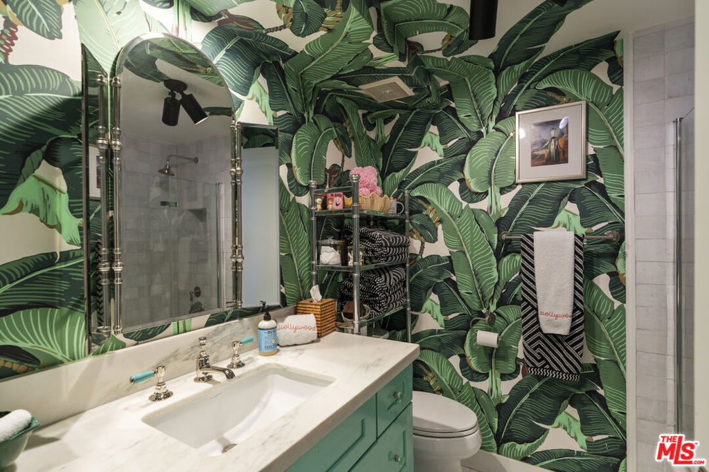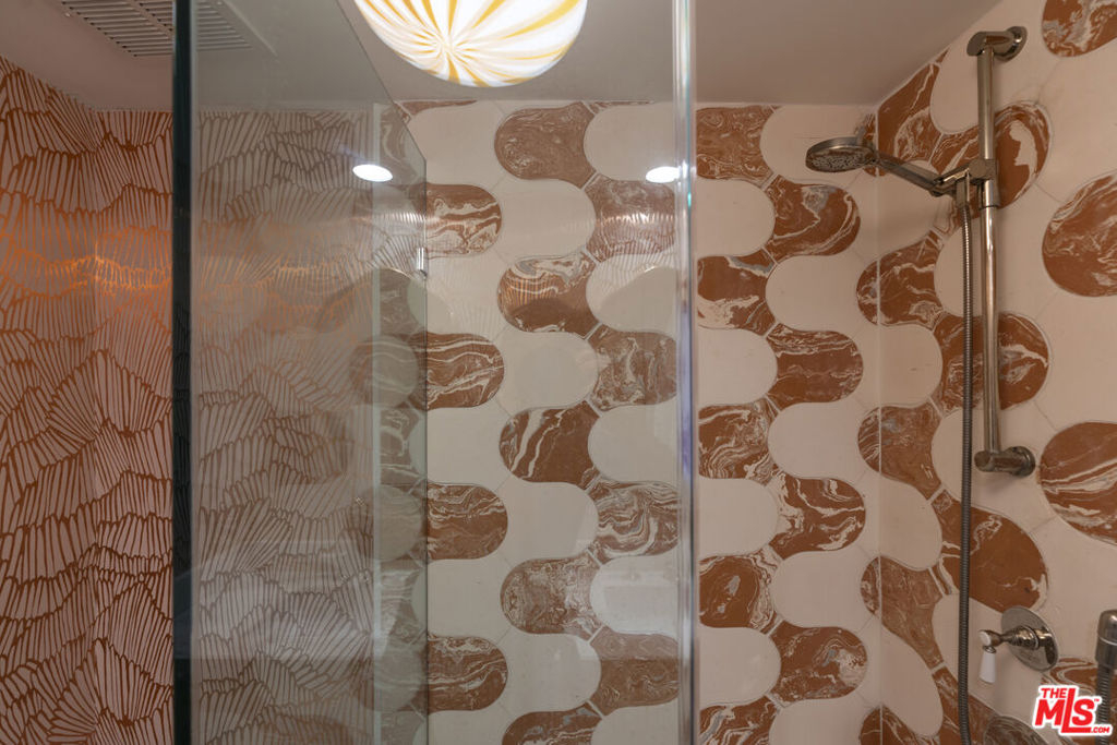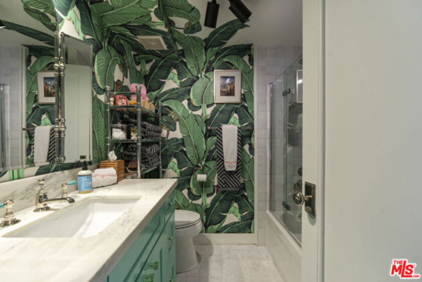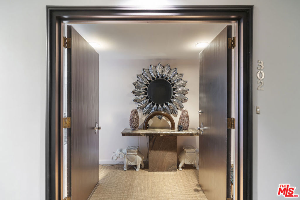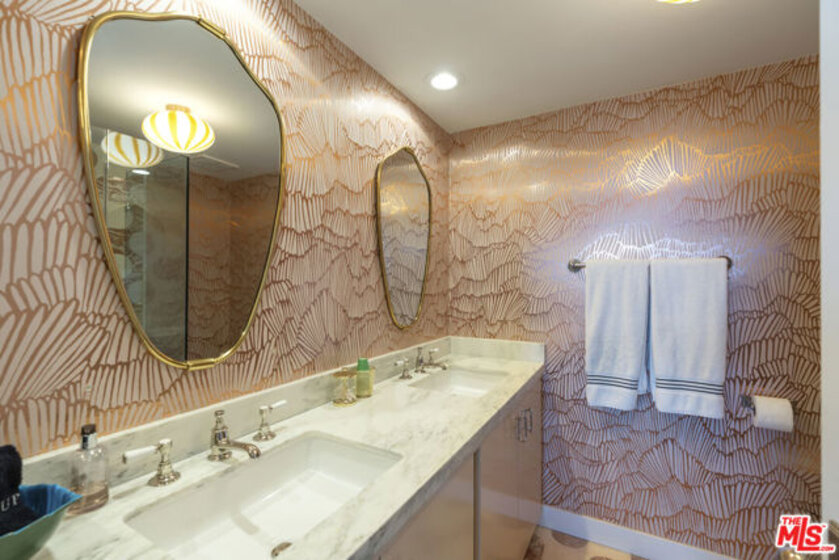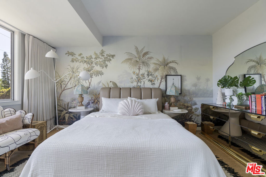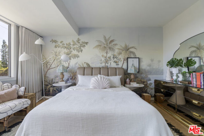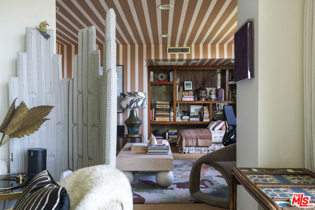 Perched within the iconic Doheny Plaza, this designer-renovated residence pairs classic mid-century architecture with bold, magazine-worthy interiors and sweeping palm-lined views across West Hollywood and beyond. Spanning approximately 1,793 square feet, the home offers effortless indoor-outdoor flow that combines substantial scale with one of the building's most desirable locations, and an ultra-rare and spacious two-bedroom, three-bath layout plus a den with its own half bath (currently styled as a lounge/office and easily adaptable as a third bedroom). Walls of glass open the expansive living and dining areas onto a generous terrace, where sunshine, skyline glimpses, and rows of swaying palms create an unmistakably Los Angeles backdrop. Inside, oversized rooms offer ideal proportions for entertaining, displaying art, or simply relaxing in a space custom-crafted for artistry and appreciation. The interiors are richly layered and distinctive, with statement lighting, curated finishes, and a level of personality rarely found in condominium living. The den, currently designed as an intimate lounge/office, adds a rare layer of flexibility and drama to the floor plan. Wrapped in striking custom striped walls, built-ins, and workspace, it works beautifully as a media room, sophisticated home office, or stylish retreat. With its own half bath, it also offers a natural conversion to a third bedroom, creating a uniquely functional flex space seldom found in condominium living. The kitchen balances vintage charm with modern function, featuring stone counters, ample cabinetry, and upgraded stainless steel appliances. Both bedrooms are oversized retreats with treetop views and copious natural light, while the baths have been transformed into jewel-box moments with custom wallpaper, stone surfaces, and boutique-hotel style. Doheny Plaza is an iconic, full-service mid-century landmark offering 24-hour security, front desk and concierge service, valet parking, gated subterranean parking, a heated saltwater pool, sun deck with lounge areas, fitness center, social/conference space, guest suites for visitors, extra storage, and laundry rooms on each floor. HOA dues include water, hot water, electricity, sewer, trash, heating and cooling, basic cable, and concierge and valet services. The building is ideally positioned on the border of West Hollywood and Beverly Hills, just moments from the Sunset Strip, premier dining, shopping, and nightlife.