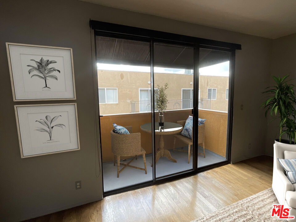Highlights : Media district of Hollywood. Ultra-quiet rear location. Top floor, townhouse-style location. Stainless kitchen-brand-new-refrigerator. Fully-gated building; secured covered garage; 2 side by side parking spaces. In unit washer and dryer maybe added (preliminary HOA approval). Roof top patio.