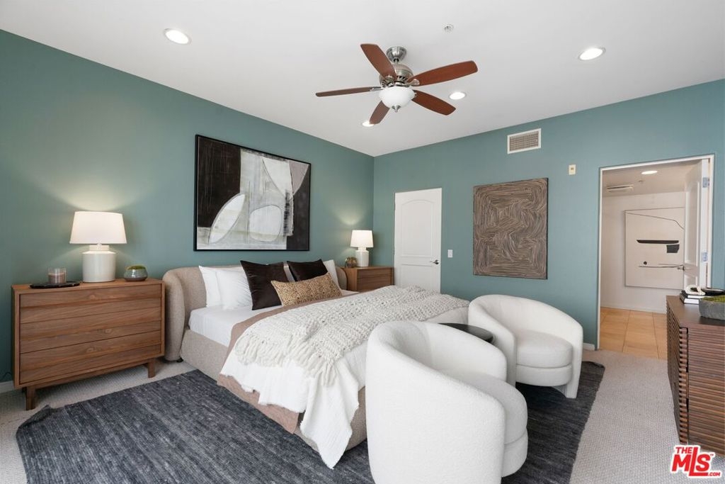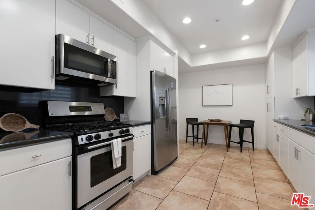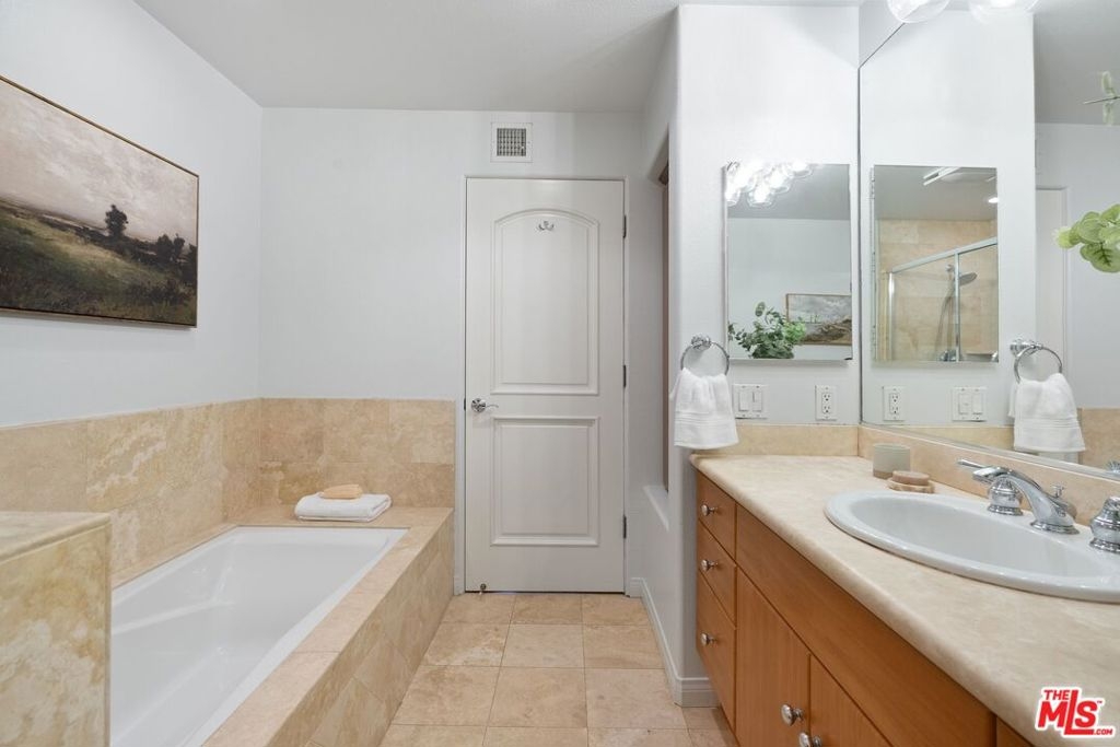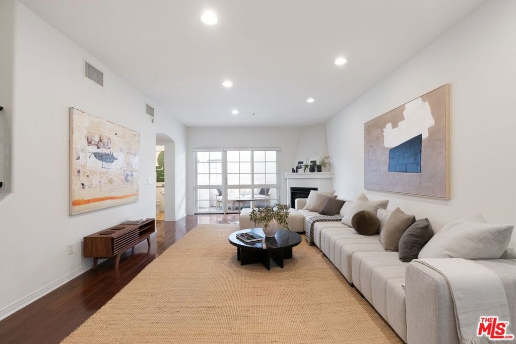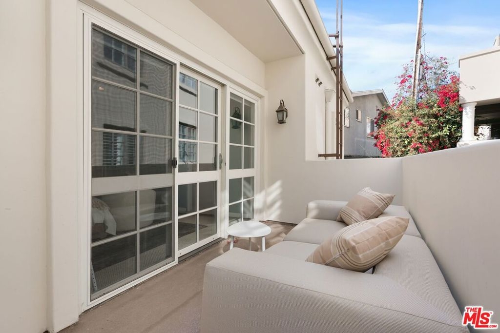 Excellent Norma Triangle location close to the best that West Hollywood has to offer including restaurants, night life, shops, West Hollywood Park & Library, and the Pacific Design Center. Townhouse living with a contemporary design esthetic. First floor living room features a corner fireplace and spacious covered patio facing the courtyard with fountain. Separate formal dining room provides additional sophistication. Streamlined kitchen with contemporary Euro-style white cabinetry, sleek black countertops, and stainless steel appliances. The second level boasts two en suite bedrooms, one with private balcony, and both with walk-in closets and zen-like baths with travertine tile, wood cabinetry, soaking tub and separate shower. In unit laundry, recessed lighting, central heating and air conditioning. Two side by side parking spaces at the easy access Hilldale entrance plus guest parking. Style and convenience perfectly blended.