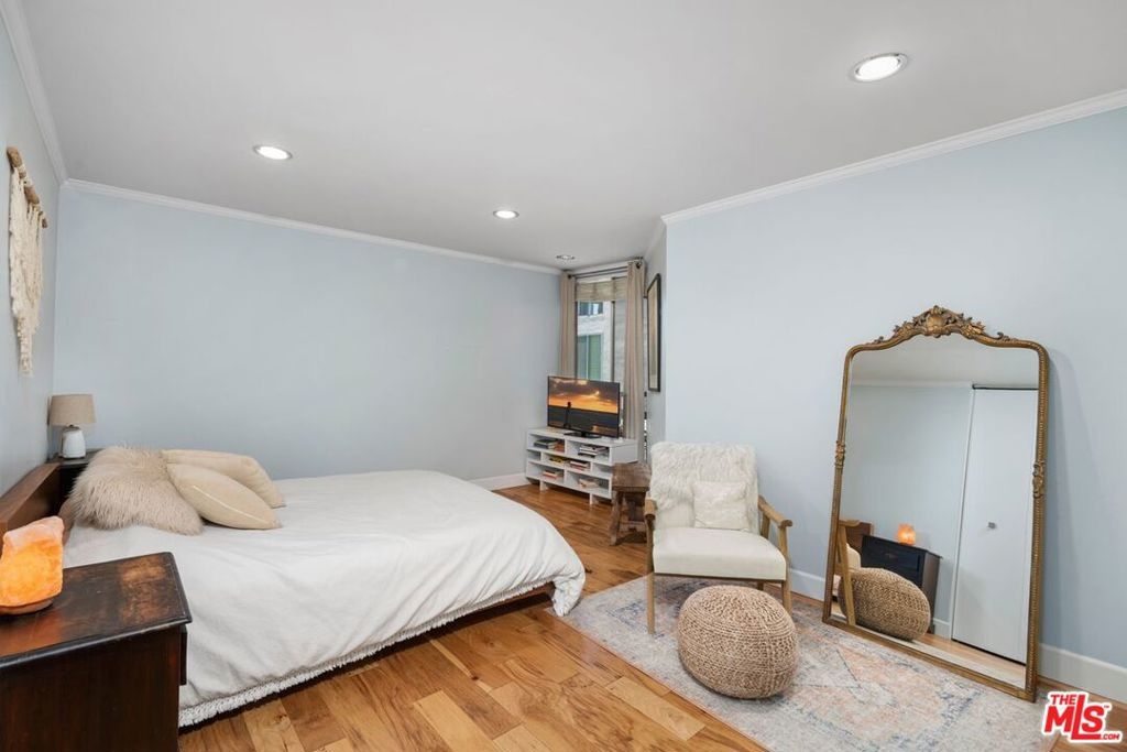 Nestled in the coveted heart of West Hollywood, this delightful unit is characterized by its charm, light, and brightness, and it is now for sale. The living room has a gas fireplace and sliding doors to a private balcony overlooking the pool and beautiful grounds. The well-maintained building stands as a testament to quality living, with its recently renovated oversized pool and spa area. Other community amenities include a sauna, gym, and a rooftop deck. Entertaining friends or hosting gatherings is a breeze with the expansive recreation room, complete with a full-size billiards table and sliding doors leading to the pool area. The gated garage entry provides secure access for assigned parking. Don't miss the opportunity to make the West Hollywood gem your new home.