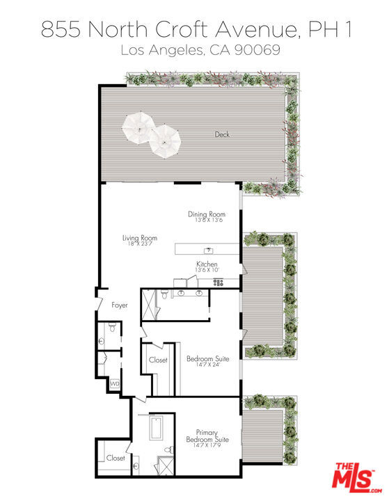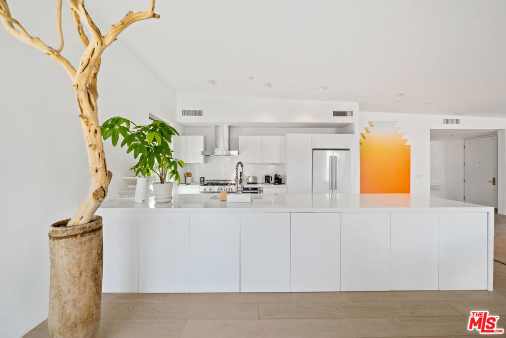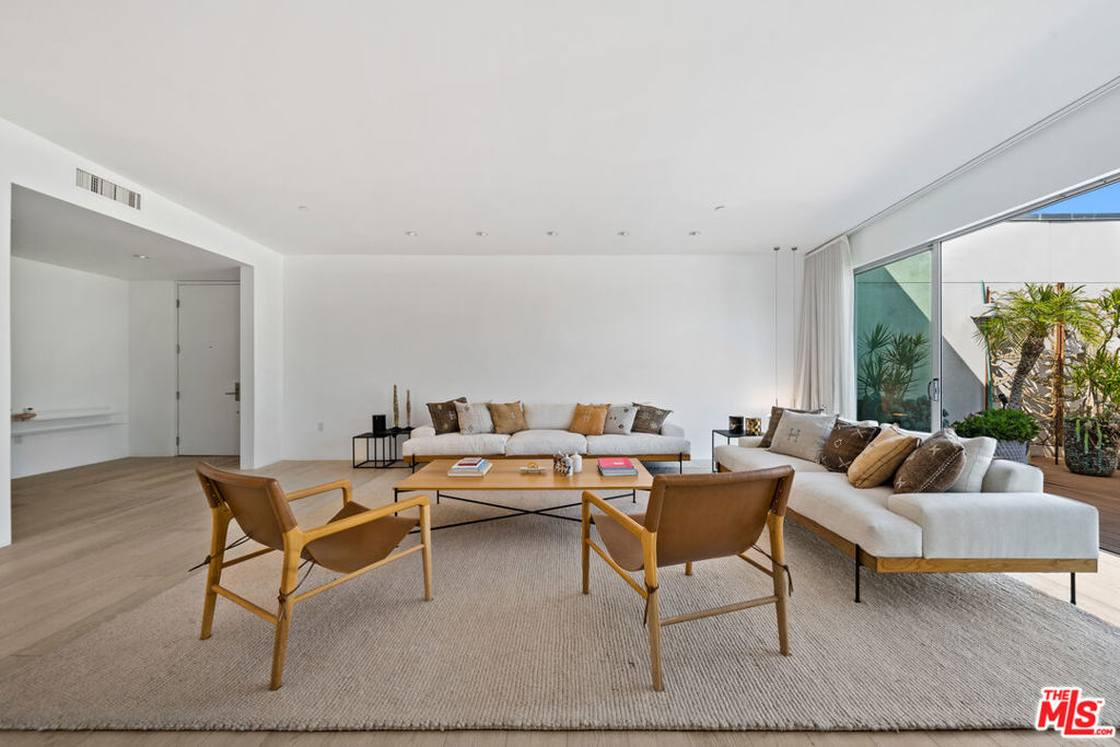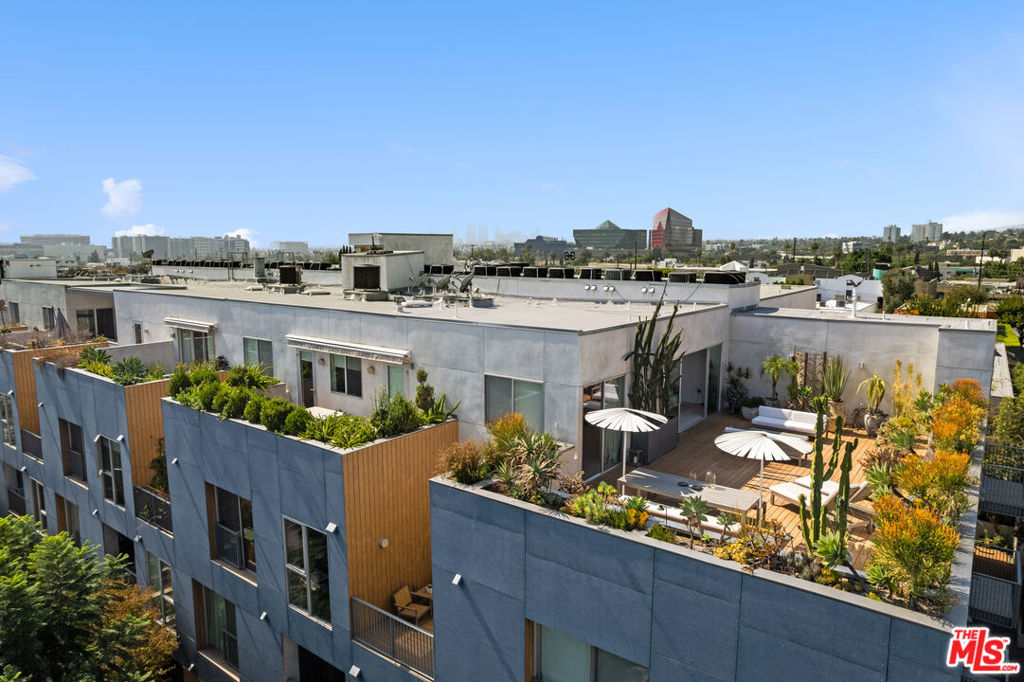 Just Reduced, Make it yours! Stunning single level designer penthouse has expansive outdoor oasis living spaces in excess of 1200 square feet (Independently measured). Situated in a beautiful modern environment designed by Zoltan Pali for SPF: architects, it has all the convenience of lock-up and go living in the ultimate location in the Melrose district. This chic unit with high ceilings, huge walls for art, incredible finishes, abundant light and postcard views of the Hollywood Hills will excite you every time you see it. The open floor plan with jaw dropping immense deck flows seamlessly off the living room. There are two spacious primary suites each with beautiful patios. Unit comes with side-by-side parking, extra garage storage and in unit laundry room. Highly sought-after location just a short stroll to Melrose Place. Why buy a house when you can have all this outdoor space, no common walls and minimal upkeep. All furniture and furnishings are available for sale.