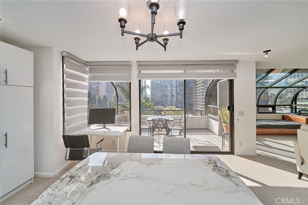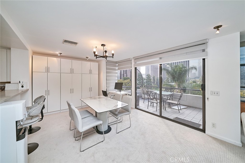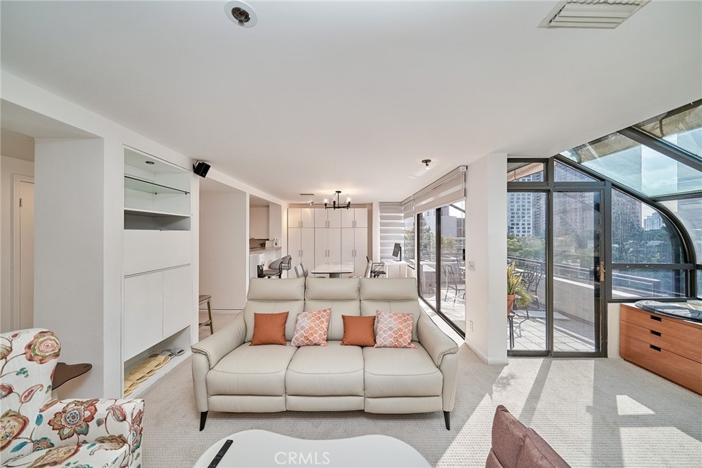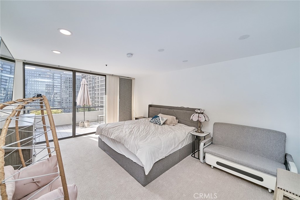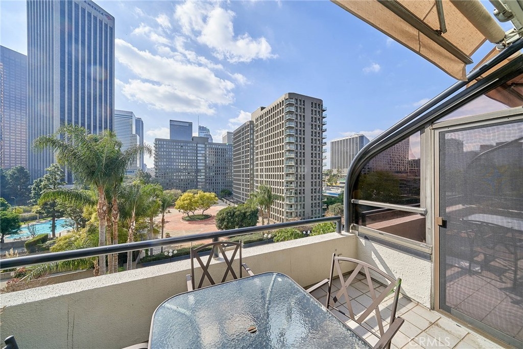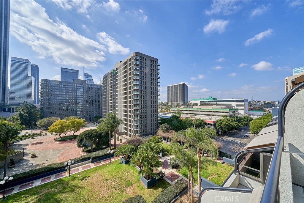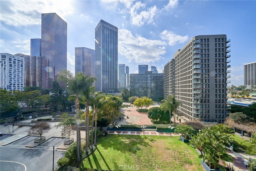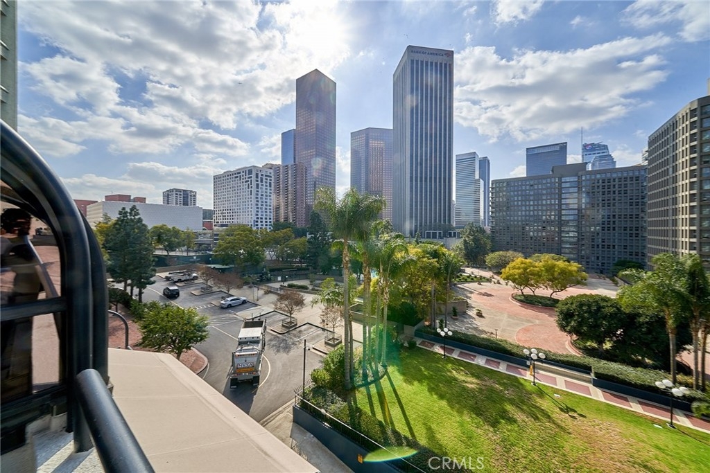 This beautiful penthouse unit in DTLA showcases the best skyline views and is a rare find at Promenade West Condos. Recently upgraded with new paint, carpets, and cabinets, the interior has been transformed. Spanning 1,028 square feet, it features a spacious, bright open floor plan with two large private balconies offering stunning downtown skyline views and equipped with folding shades. Natural light pours in from the south, providing sweeping vistas of the Broad Museum, the DTLA skyline, and courtyard palm trees. Designed by a professional, the interior includes built-in seating, ample storage space, and a stylish bar nook. The kitchen boasts new tile flooring, complementing the overall aesthetic. A generously sized master walk-in closet with well-organized shelves adds convenience. Conveniently located, the unit includes one assigned parking space in the underground garage entrance, with additional spaces available for monthly purchase if needed. Promenade West offers luxurious amenities akin to a hotel, including 24-hour security, swimming pools, spas, exercise rooms, saunas, onsite management, and basic cable TV. Common areas feature onsite dog parks, lush green gardens, and serene waterfalls. Local amenities such as convenience stores, dry cleaners, and delivery services are within easy reach. The location is ideal for walking to nearby attractions including the Disney Concert Hall, Ahmanson Theater, Mark Taper Forum, Dorothy Chandler Pavilion, Grand Park, Broad Museum, restaurants, courthouses, city hall, and the Metro Regional Connector. HOA membership fees cover water, waste disposal, general liability/fire insurance, and earthquake insurance. Residents are responsible for electricity and internet costs.