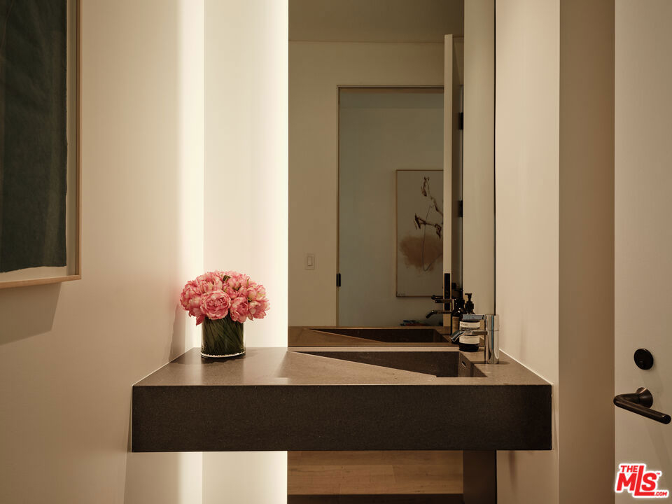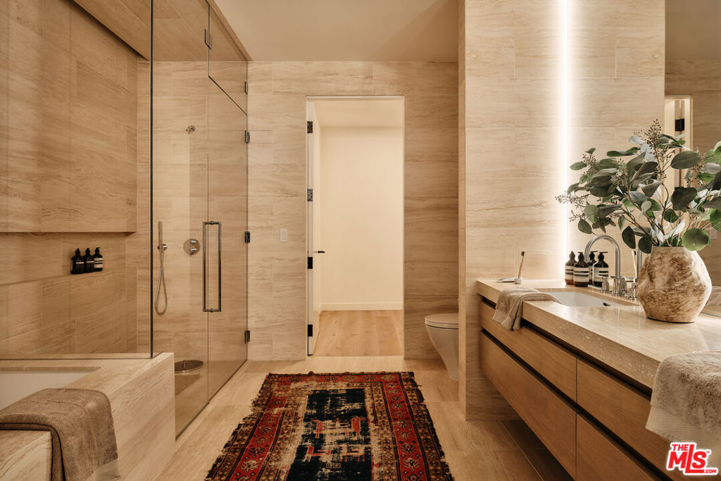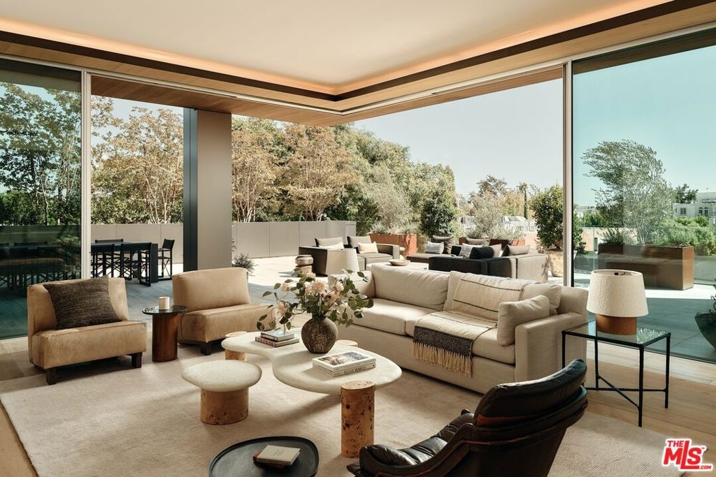 Residence 4D | The ultimate emblem of California-style indoor/outdoor living, this southeast-corner home at 8899 Beverly opens to a breathtaking 1,500 SF landscaped terrace. Designed by award winning architect Olson Kundig and spanning 2,463 interior SF, Residence 4D offers two expansive entertaining areas and dual primary suites. Floor-to-ceiling operable window walls by Vitrocsa connect the entertaining spaces directly to the oversized garden terrace. The custom chef's kitchen features white oak cabinetry, Italian Calacatta gold marble, and appliances by Gaggenau, Miele, and Sub-Zero. The two bedroom suites sit at opposite ends of the home for privacy and balance. Each includes a walk-in closet and spa-inspired bath clad in Italian travertine with dual vanities. 8899 Beverly provides full-service living with 24-hr concierge and valet, state-of-the-art fitness center, and a quarter-acre retreat with resort-style pool, spa, fireplaces, and open-air kitchen steps from West Hollywood's finest dining, shopping, and entertainment. Residence 4D is the last of the coveted garden-terrace residences at 8899, offered new from the developer.